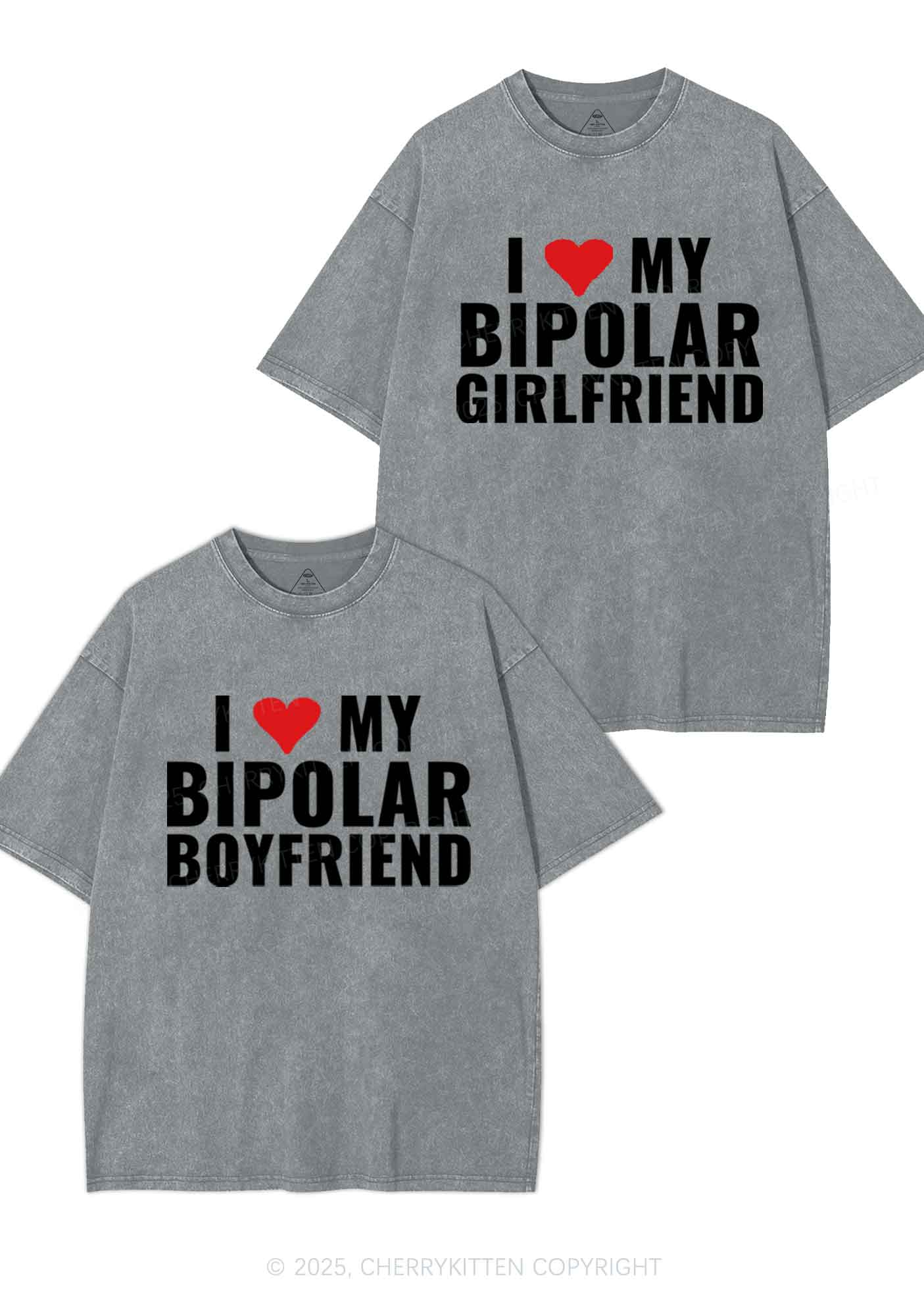I Love My Bipolar GF BF Y2K Valentine's Day Washed Tee Cherrykitten
