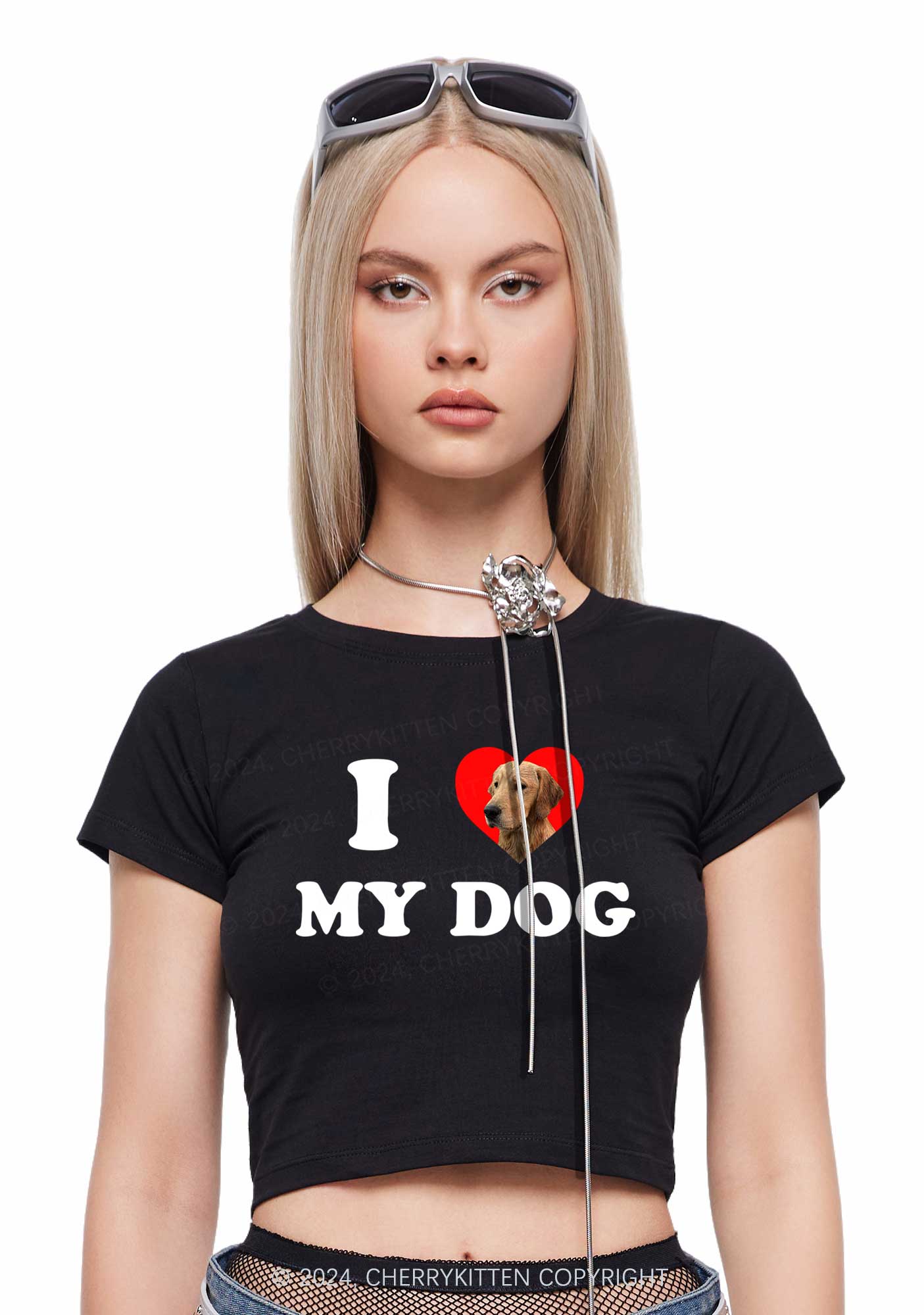 I Love My Dog Custom Photo Y2K Baby Tee Cherrykitten