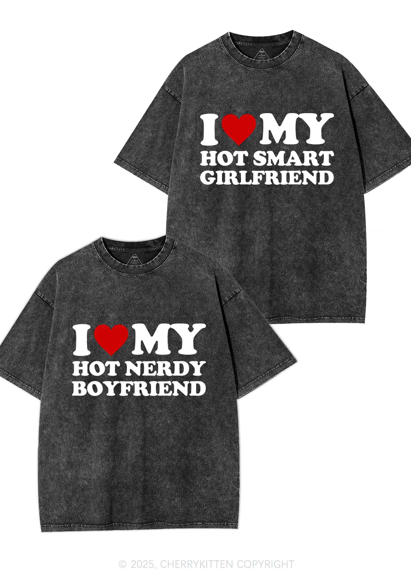 I Love My Hot Nerdy BF Y2K Valentine's Day Washed Tee Cherrykitten