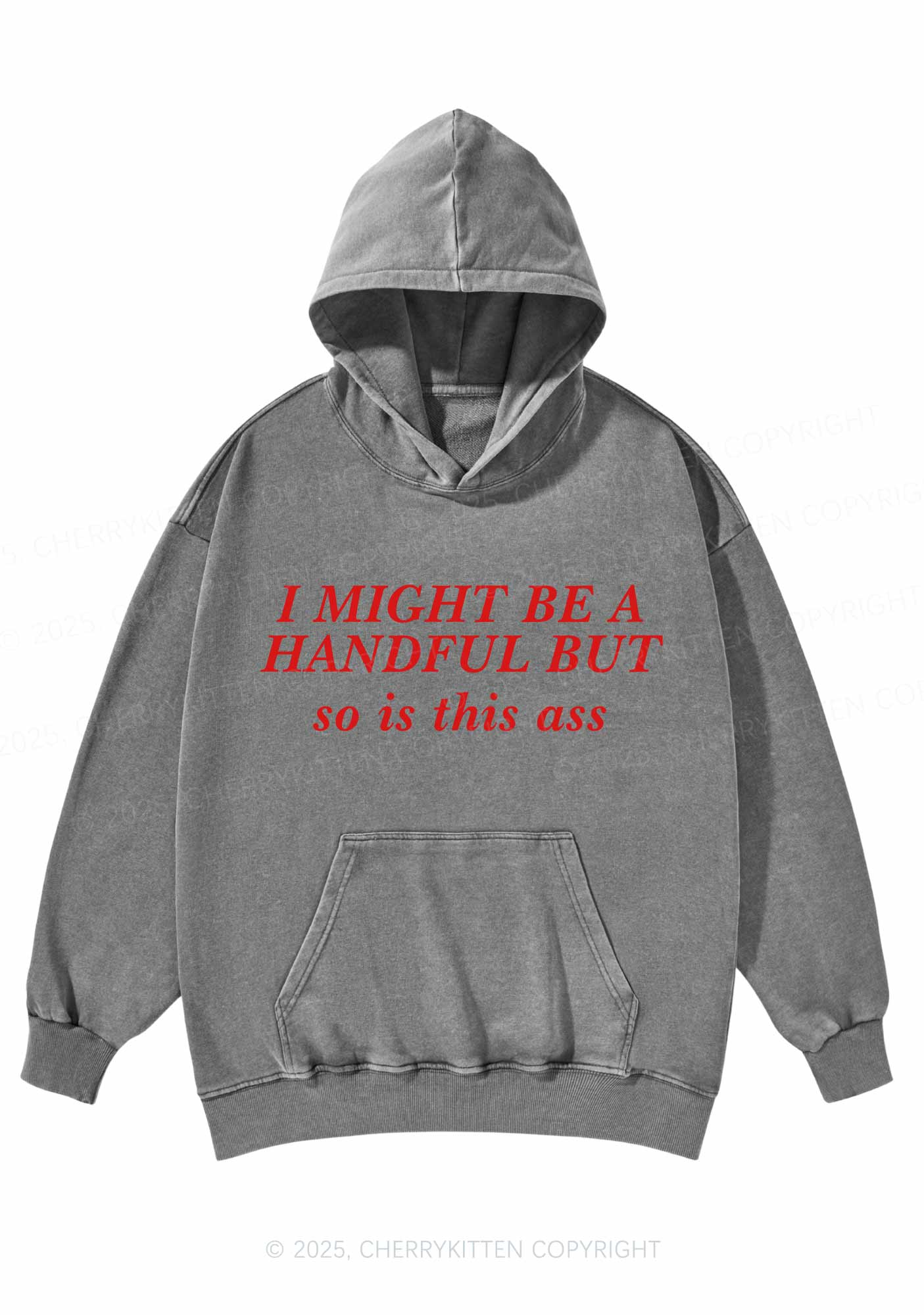 I Might Be Handful Y2K Washed Hoodie Cherrykitten