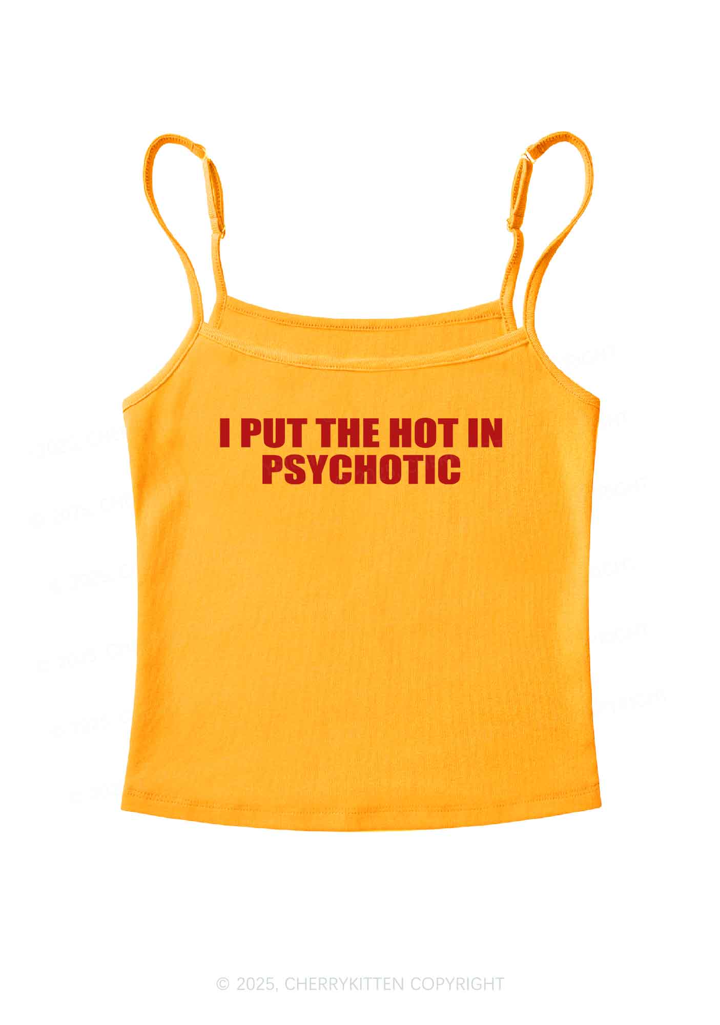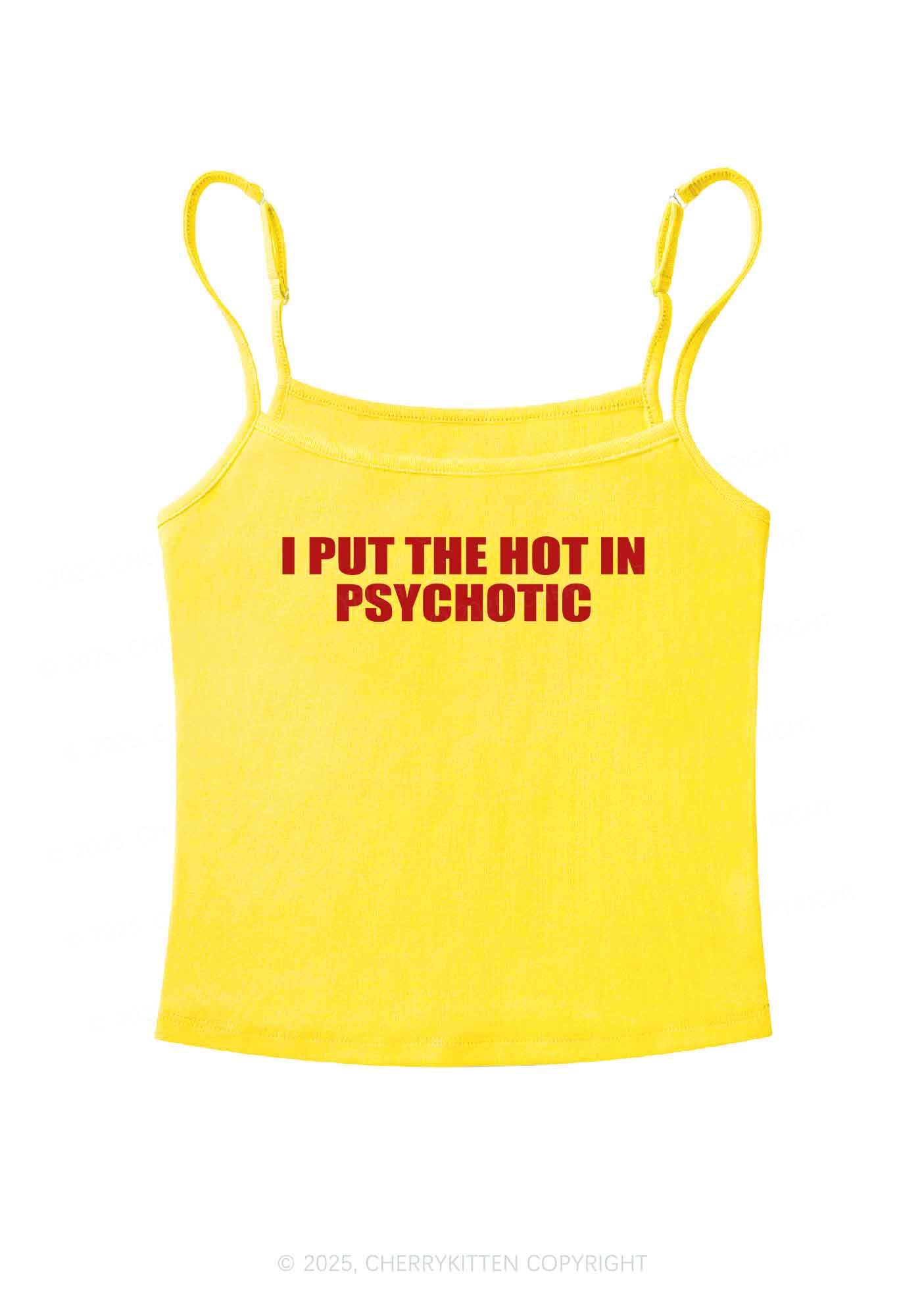 I Put The Hot In Psychotic Y2K Spaghetti Strap Cami Cherrykitten