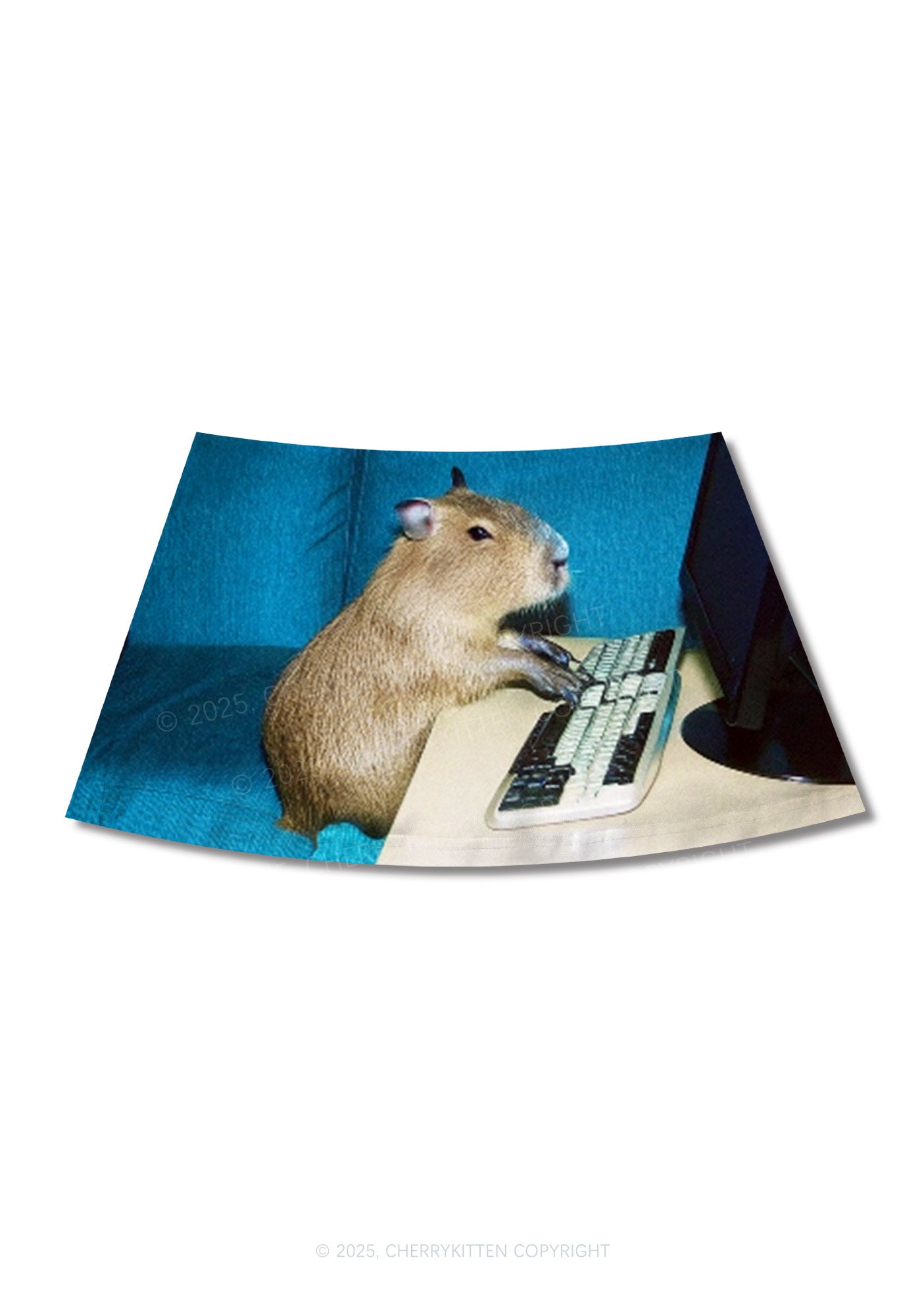 Keyboard Capybara Y2K Print Mini Skirt Cherrykitten