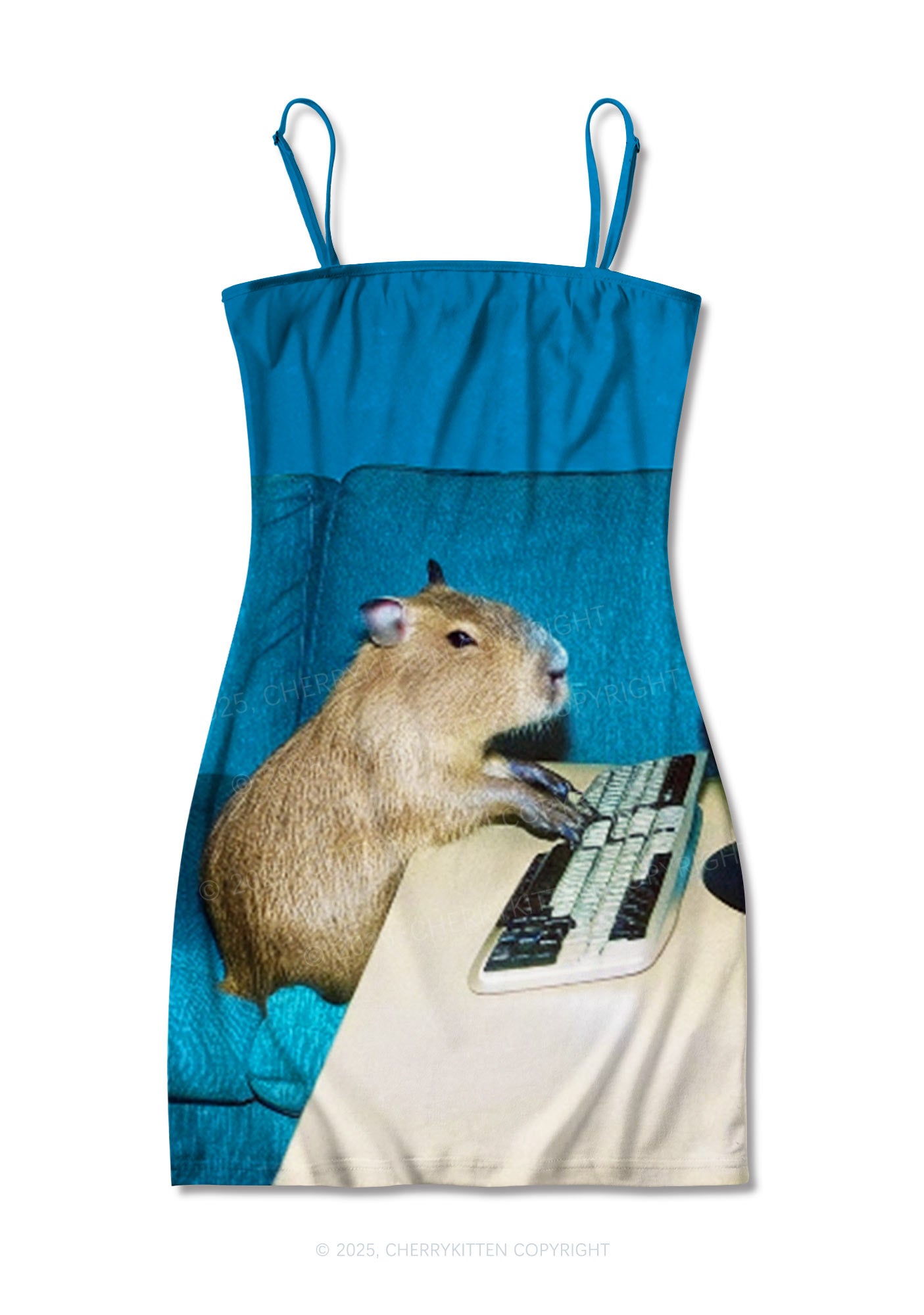 Keyboard Capybara Y2K Print Slip Dress Cherrykitten