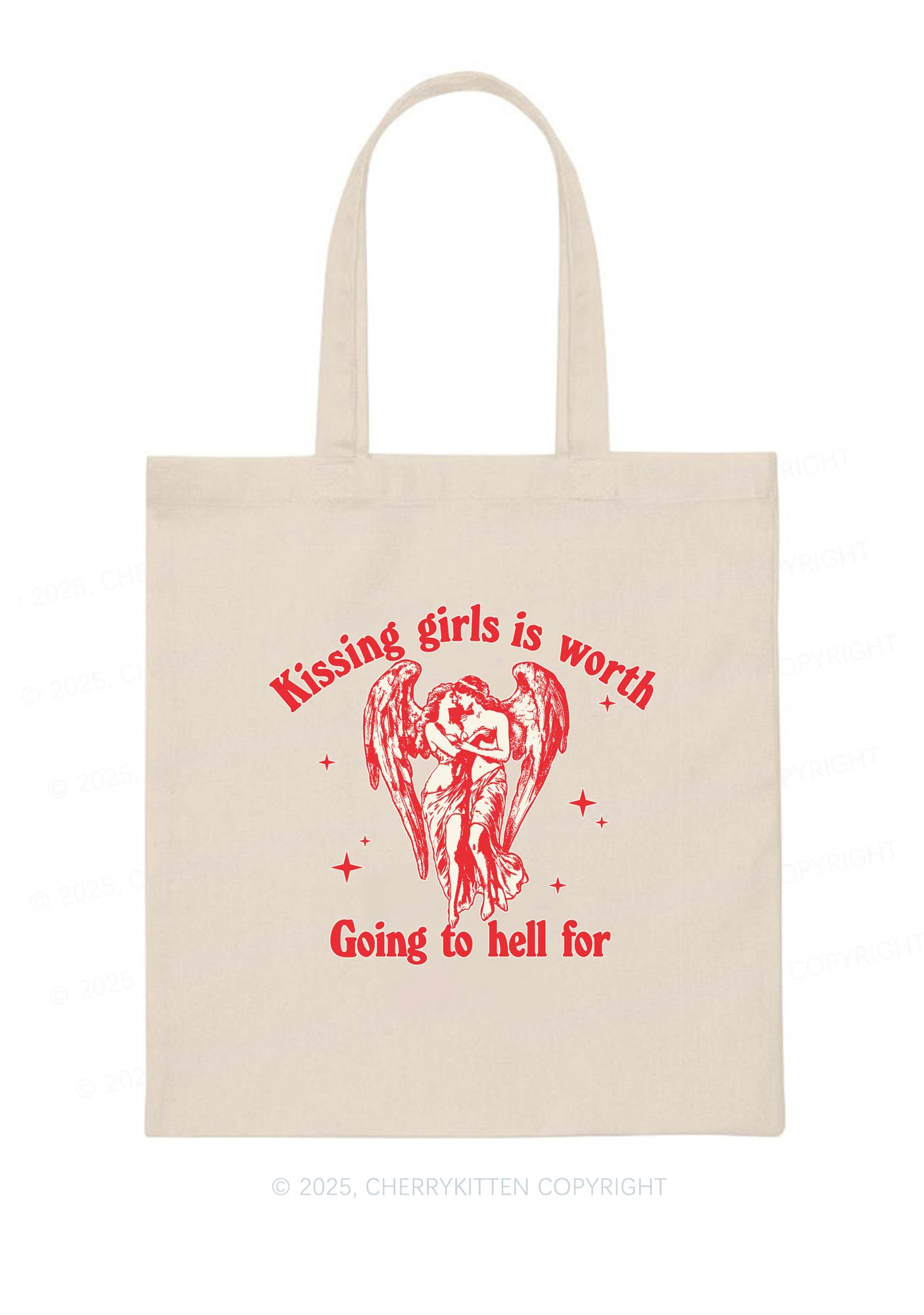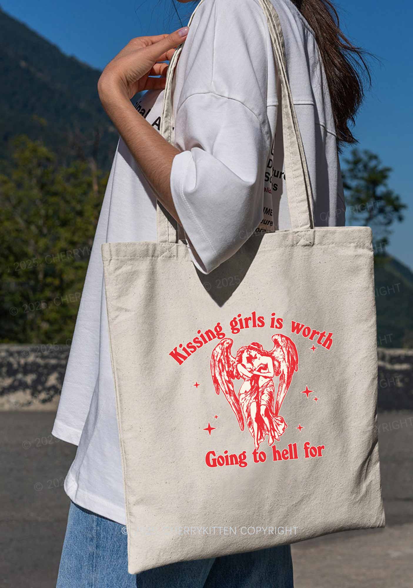 Kissing Girls To Hell Pride Y2K Canvas Tote Bag Cherrykitten