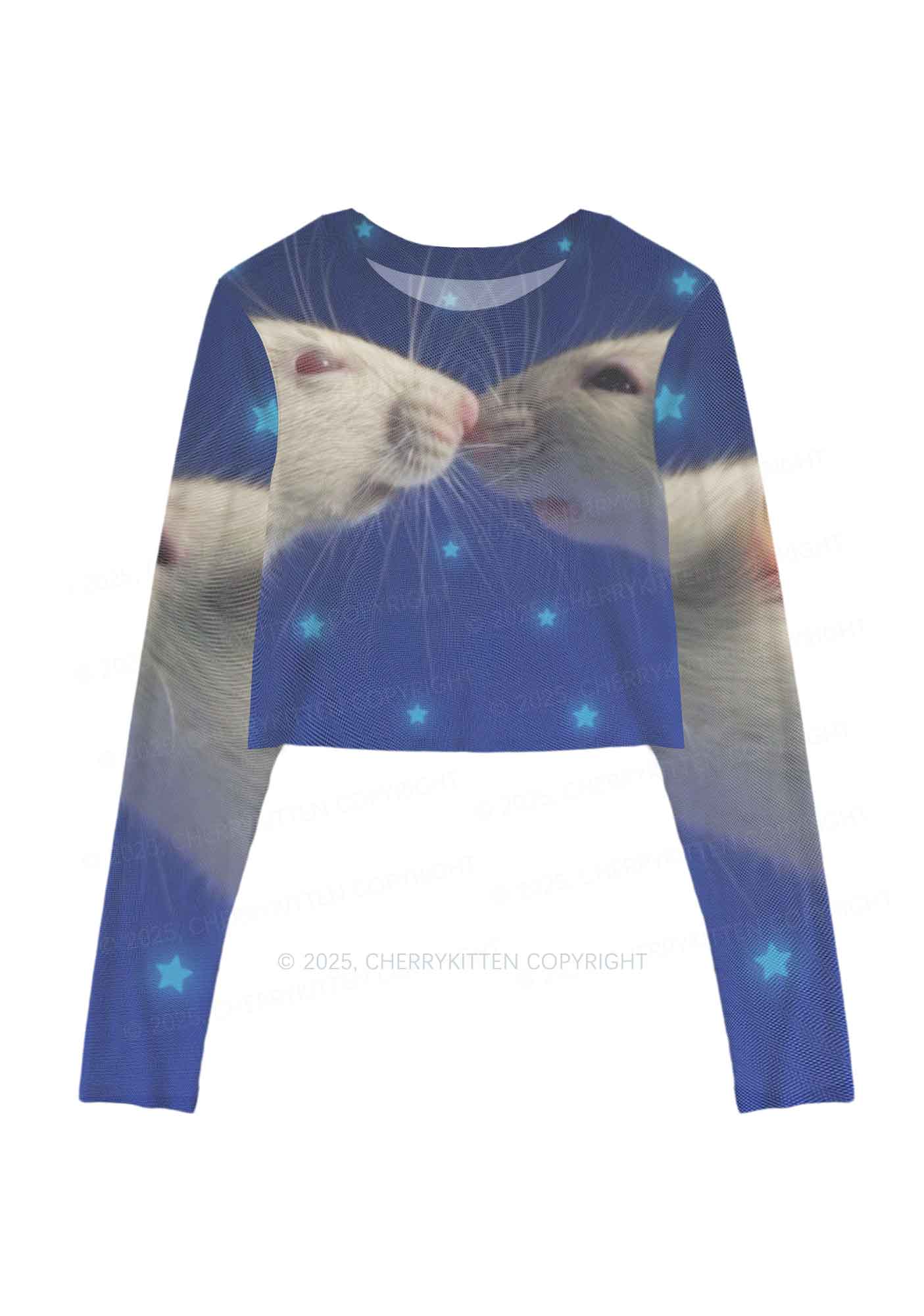 Kissing Rats Y2K Mesh Long Sleeve Crop Top Cherrykitten