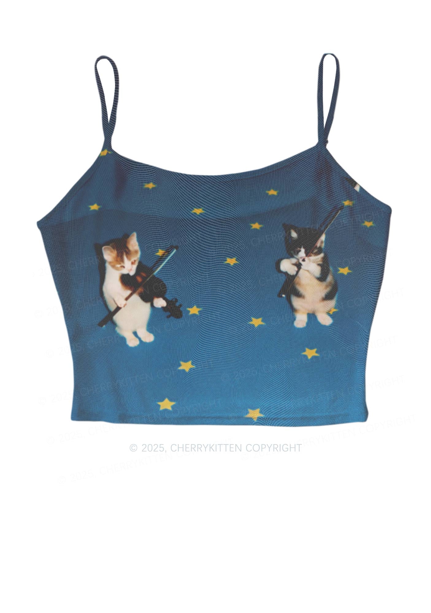 Kitten Violinist Y2K Mesh Cami Tank Cherrykitten