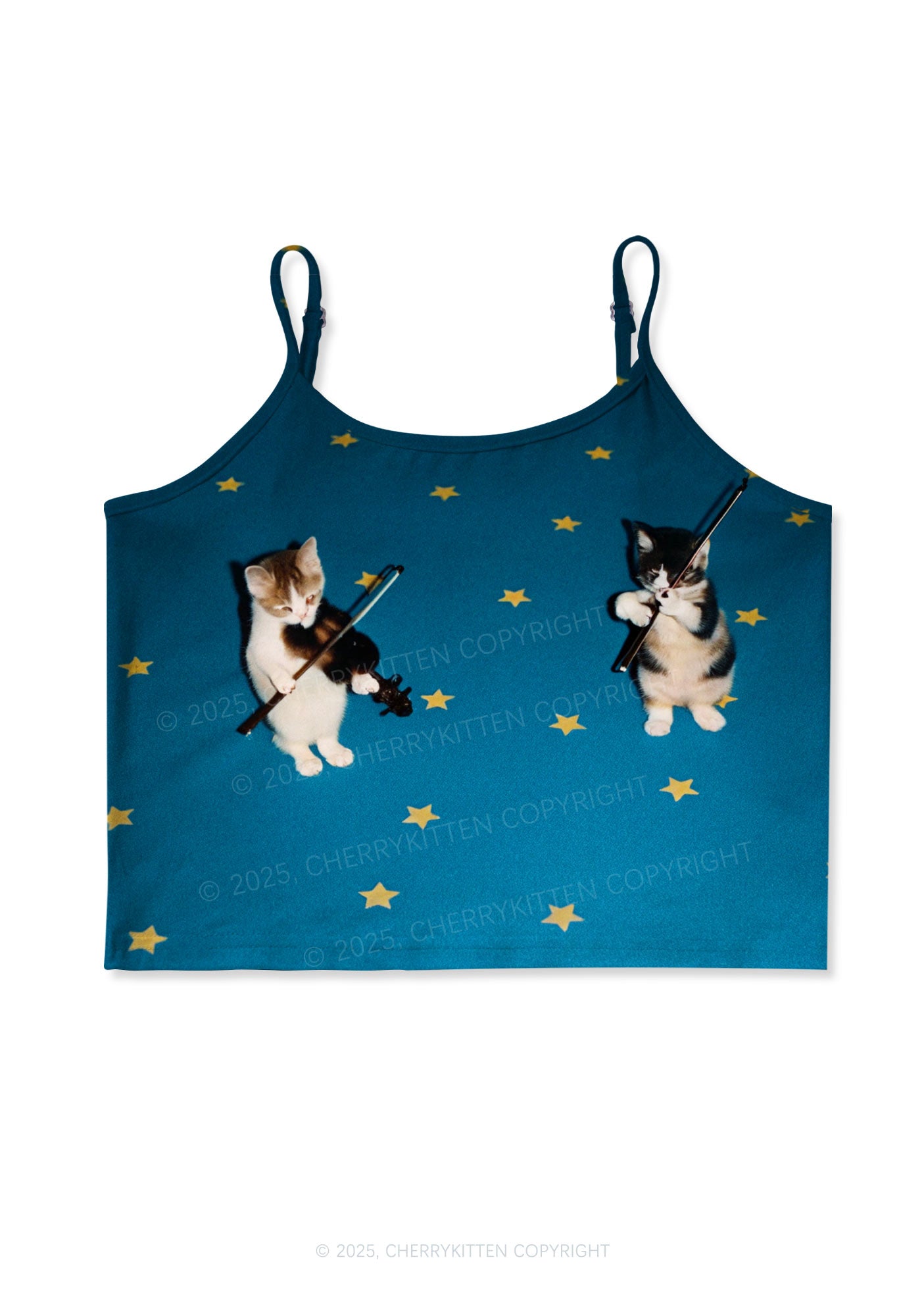 Kitten Violinist Y2K Print Cami Crop Top Cherrykitten