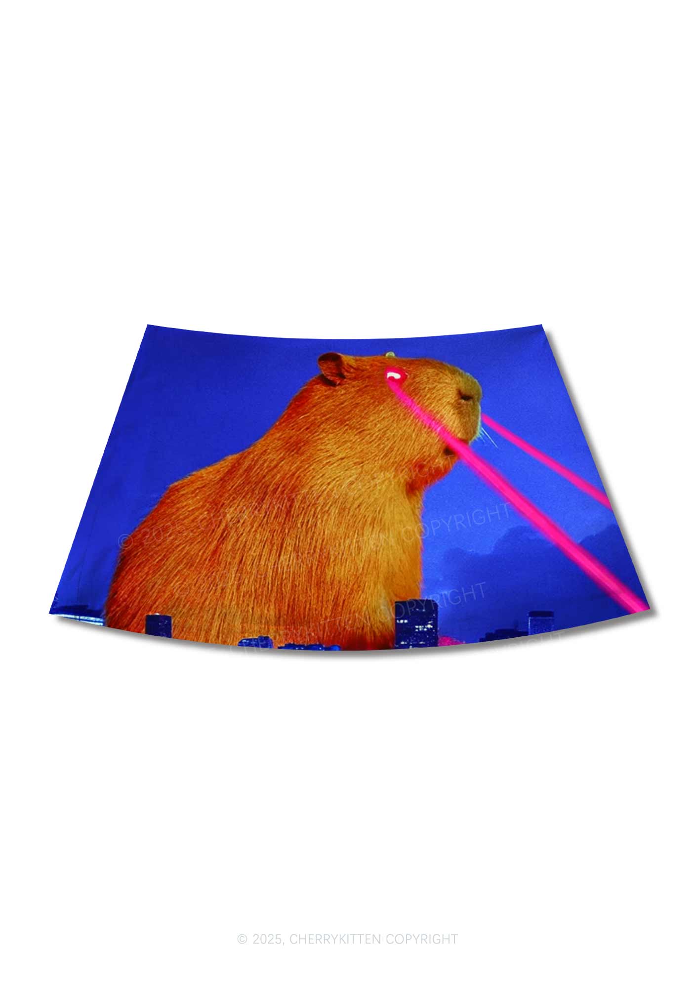 Laser Monster Capybara Y2K Print Mini Skirt Cherrykitten
