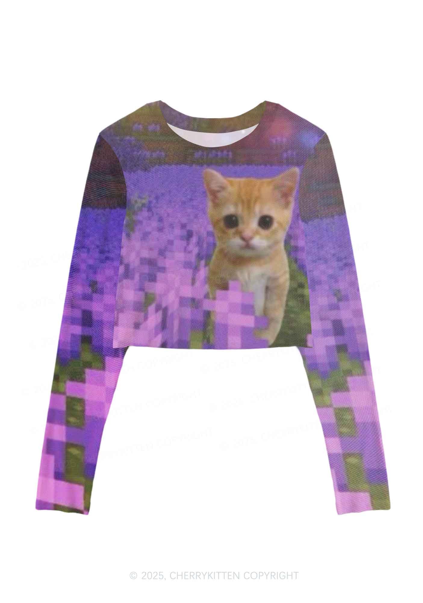 Lavender Kitten Y2K Mesh Long Sleeve Crop Top Cherrykitten