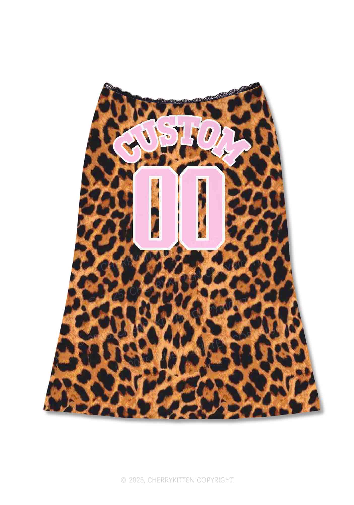 Leopard Custom Text Y2K Print Midi Skirt Cherrykitten