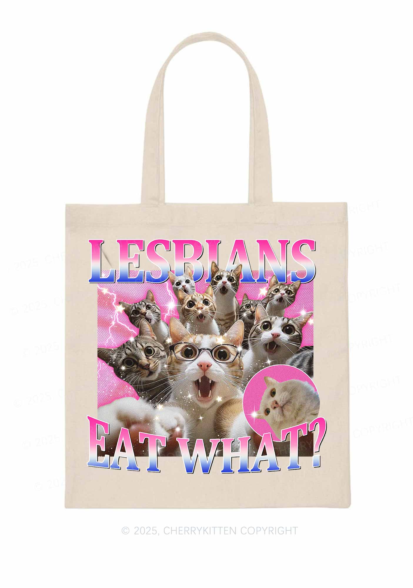 Lesbians Eat What Cat Pride Y2K Canvas Tote Bag Cherrykitten