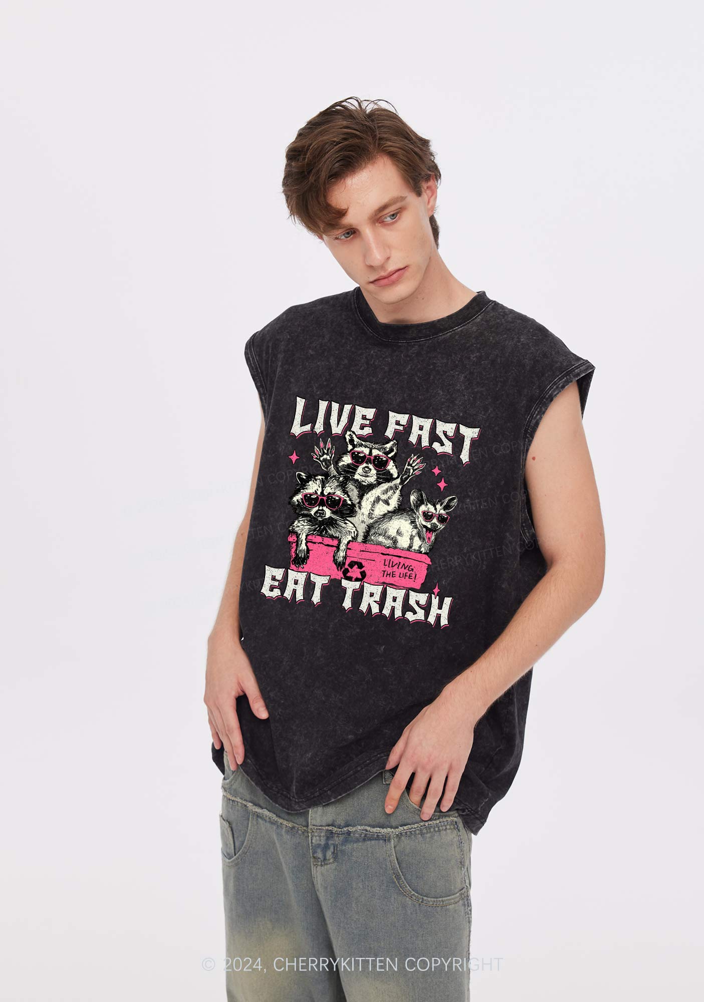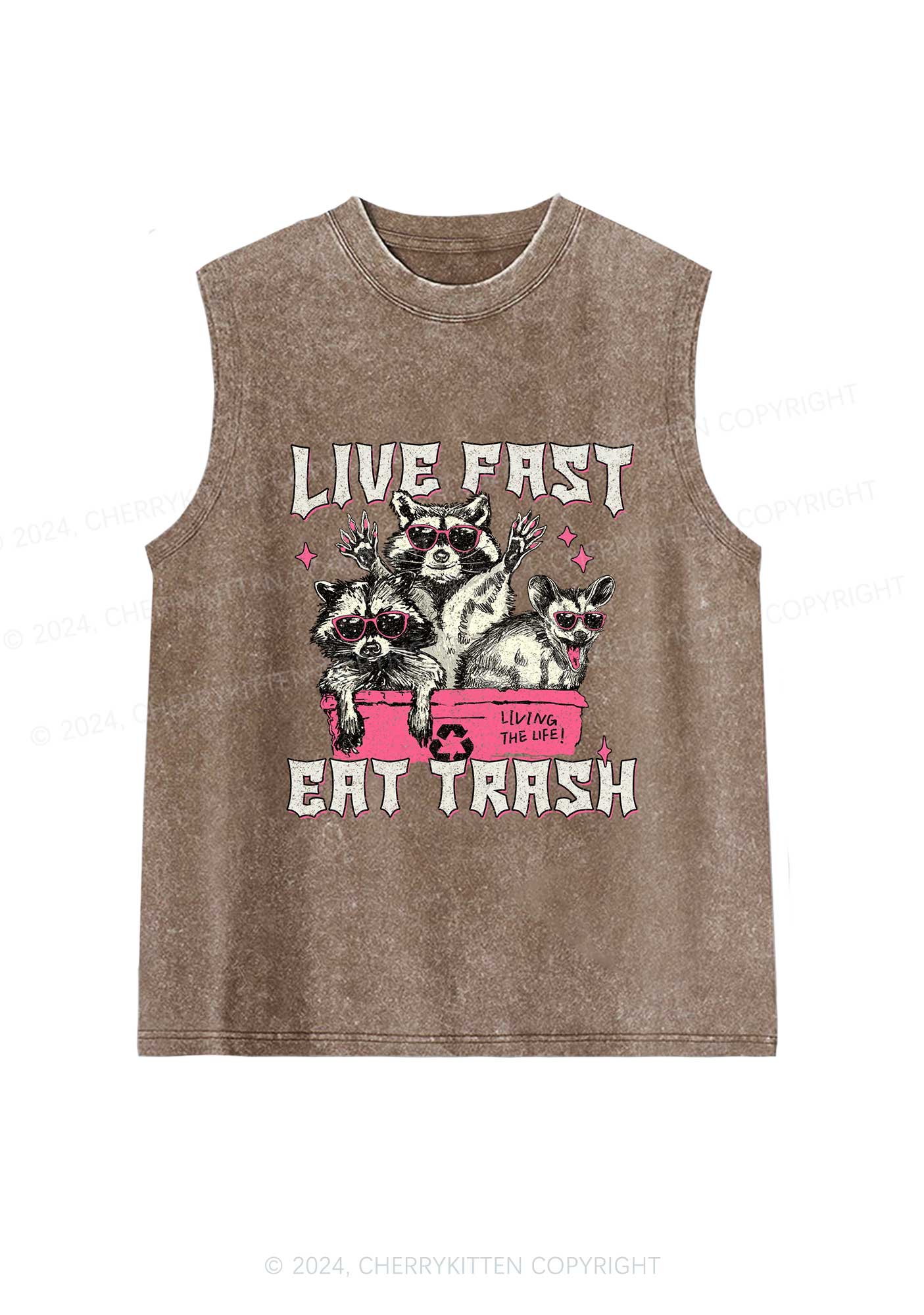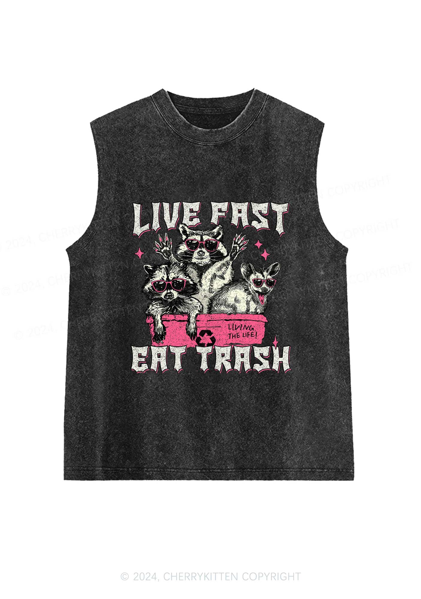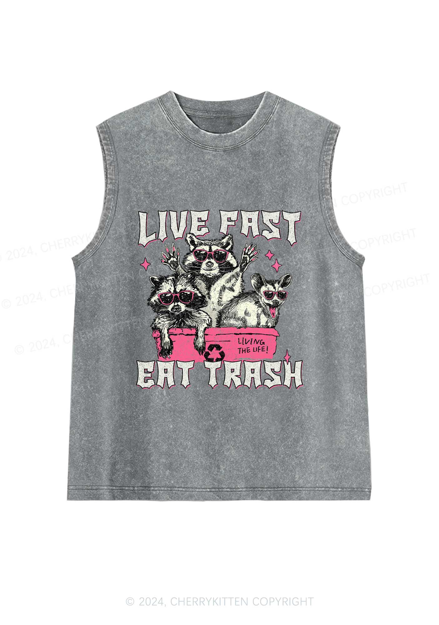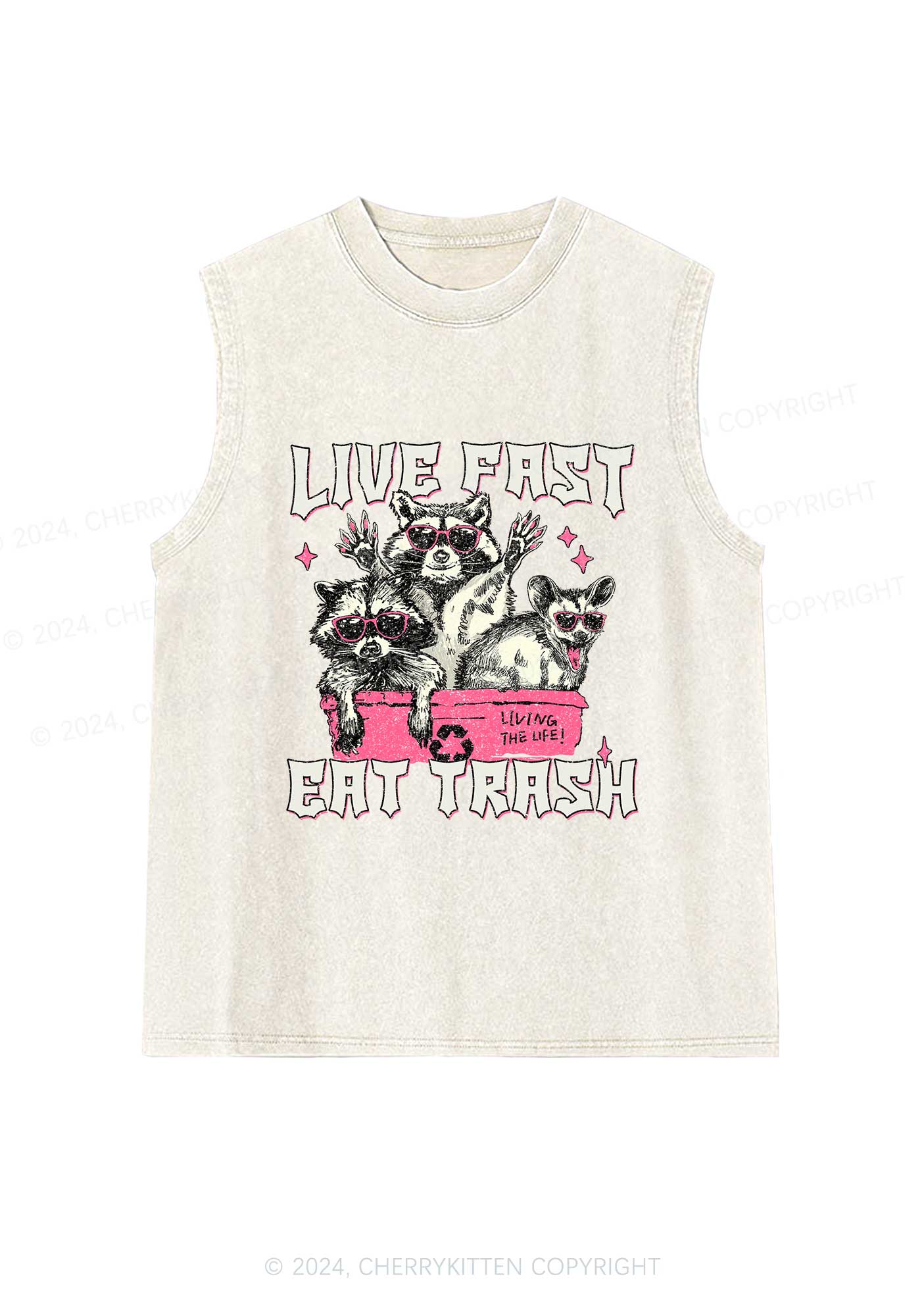 Live Fast Eat Trash Y2K Washed Tank Cherrykitten