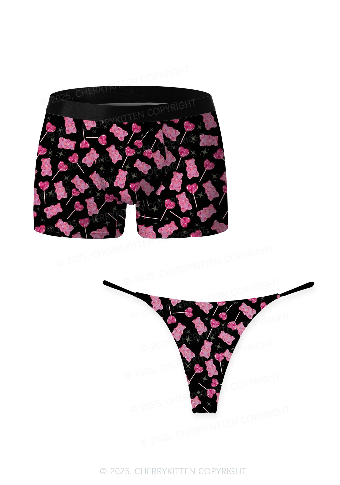 Lollipops Gummies Valentine's Day Y2K Print Couples Boxer Thong Set Cherrykitten