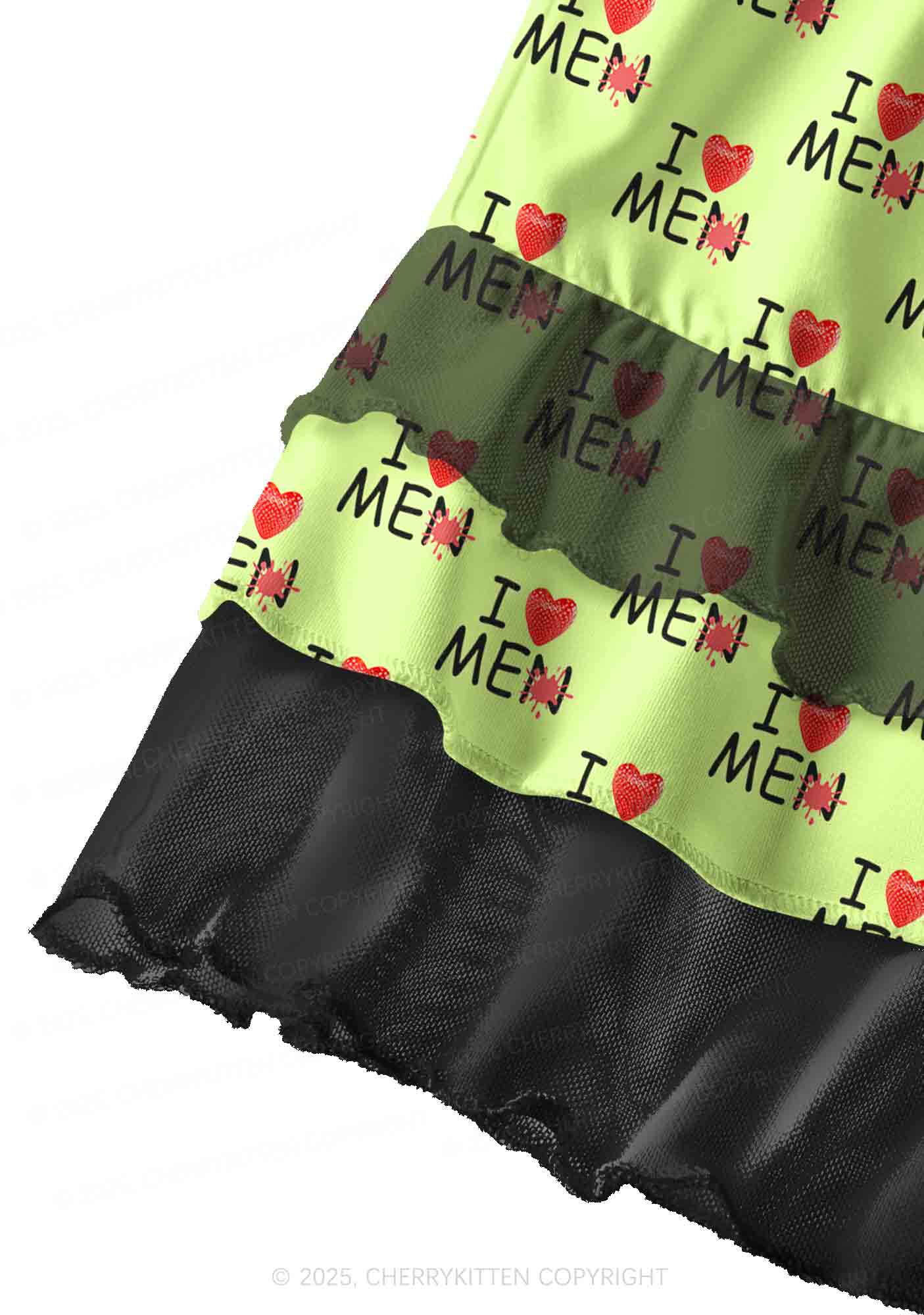 Love Me Not Men Green Y2K Print Mini Layered Skirt Cherrykitten
