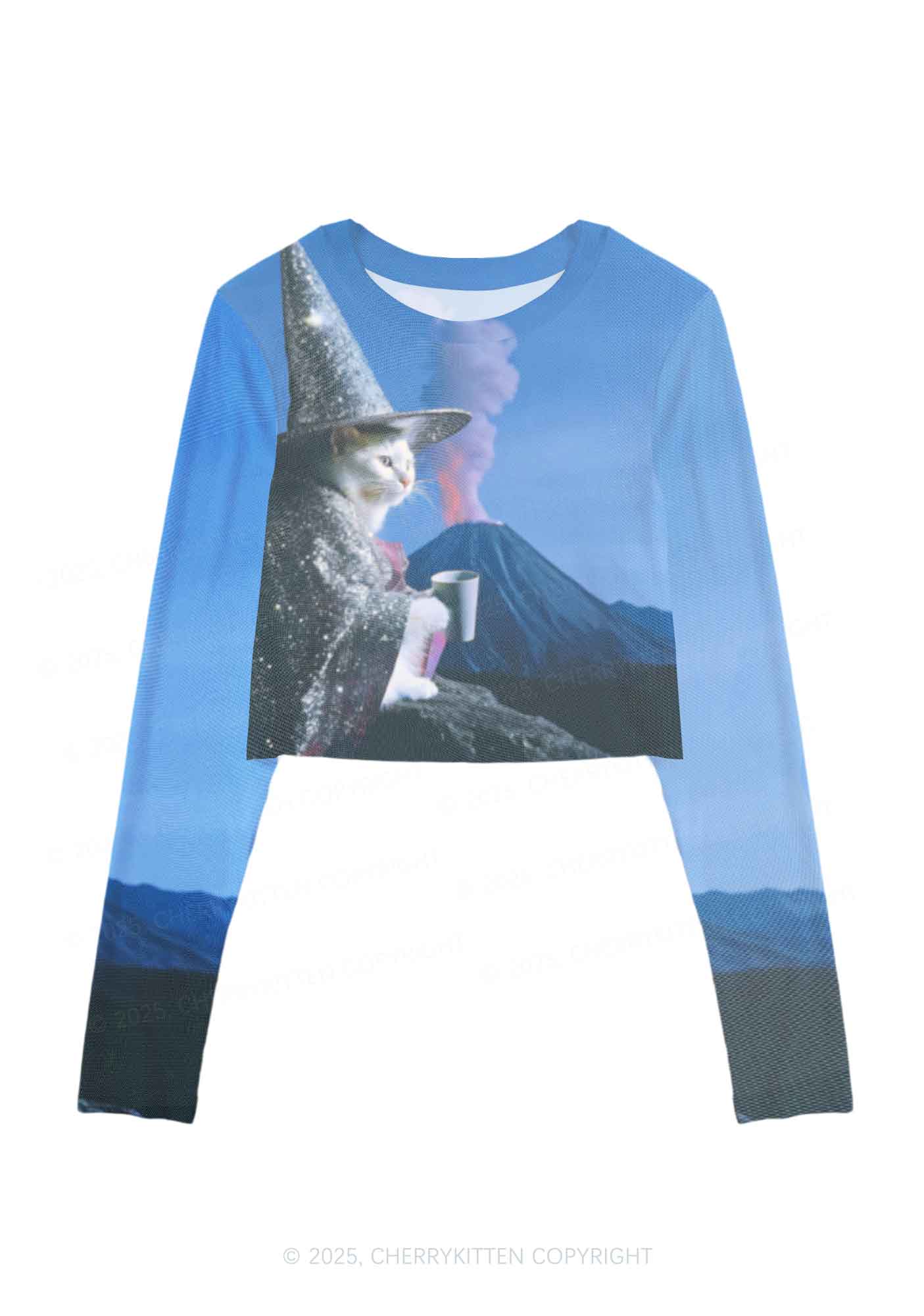 Magic Cat Y2K Mesh Long Sleeve Crop Top Cherrykitten