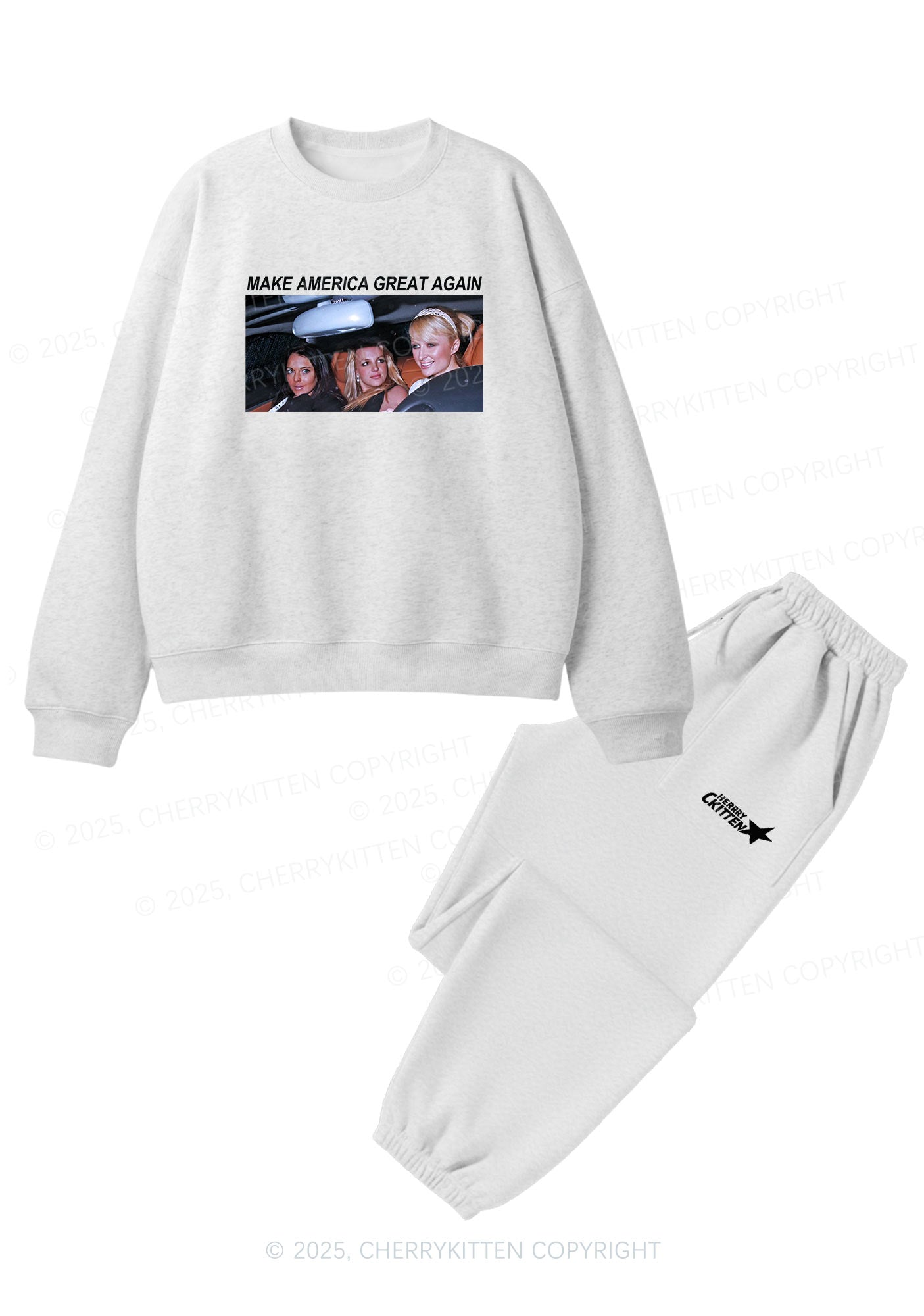 Make America Great Again Y2K Fleece Sweatshirts Set Cherrykitten