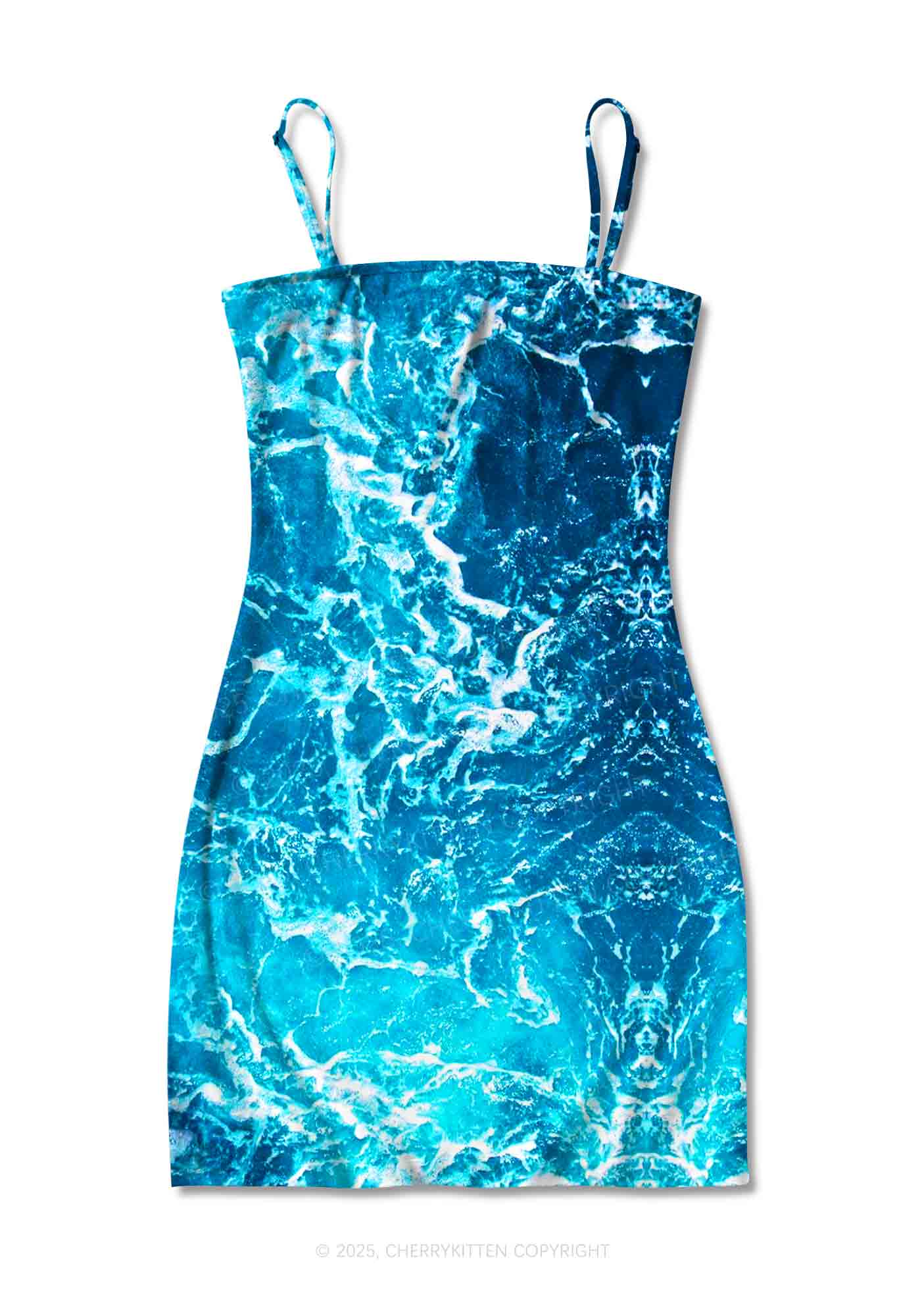 Ocean Wave Y2K Print Slip Dress Cherrykitten
