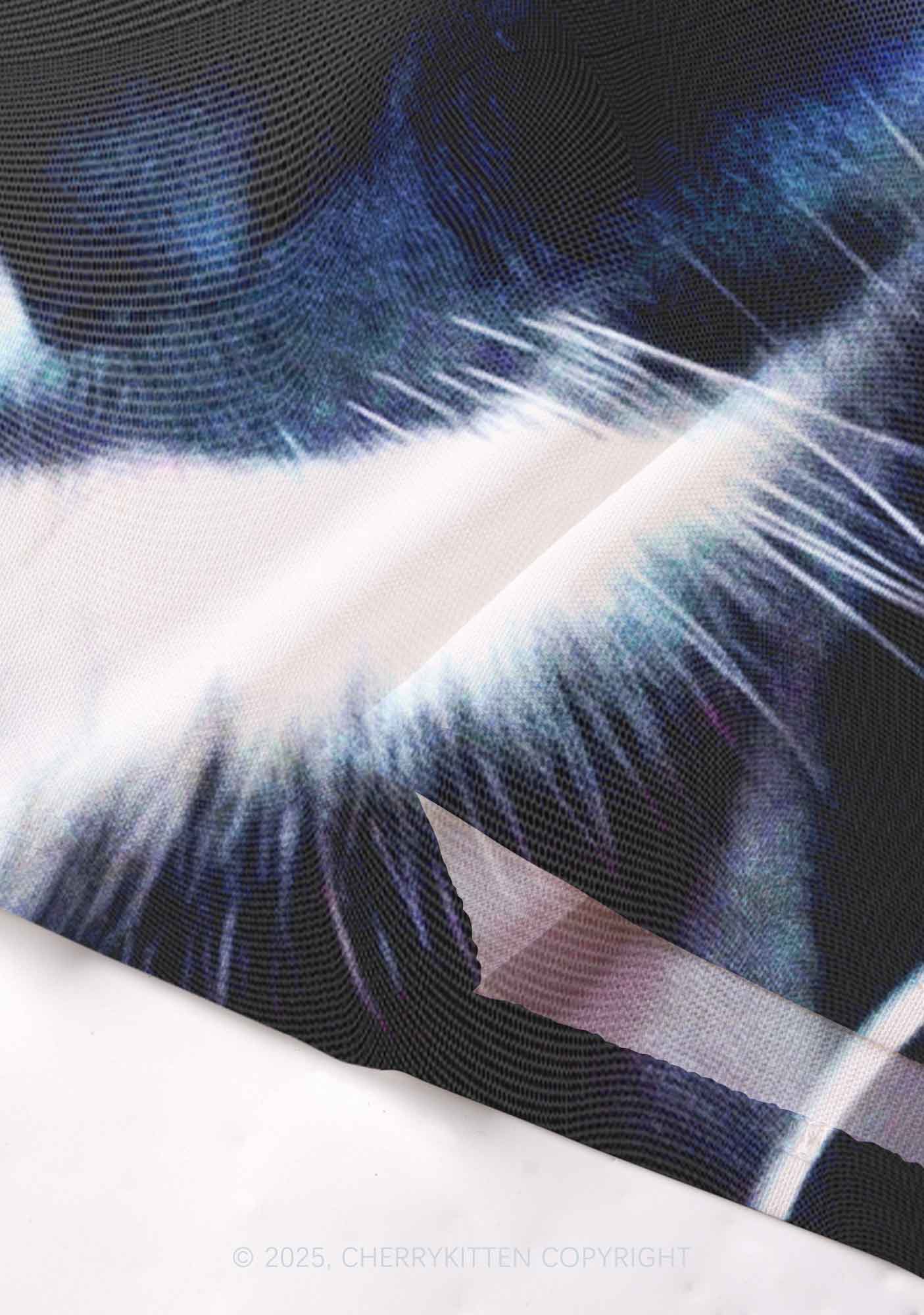Odd Eyed Cat Y2K Mesh Crop Top Cherrykitten