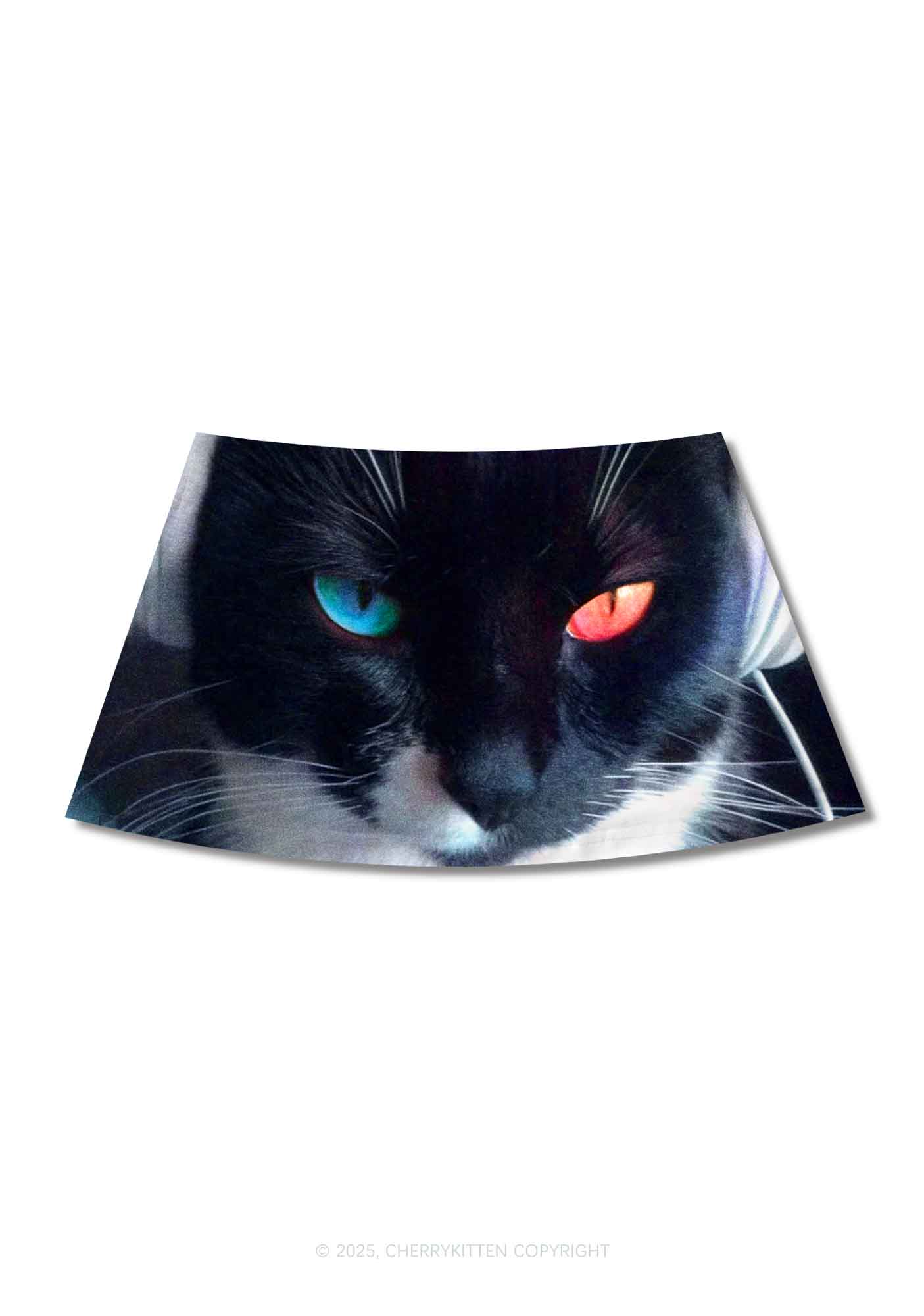 Odd Eyed Cat Y2K Print Mini Skirt Cherrykitten