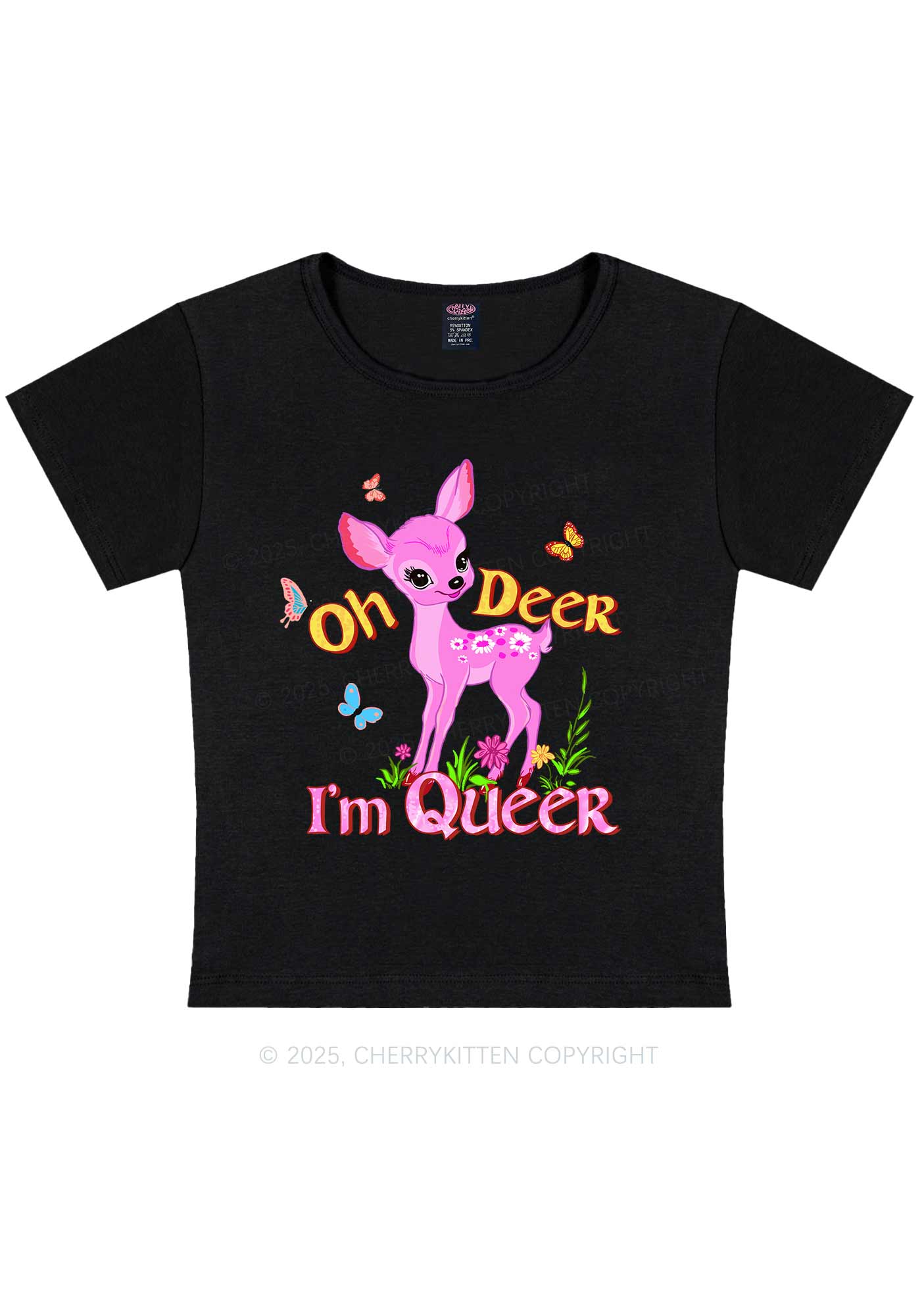 Oh Deer Im Queer Pride Y2K Baby Tee Cherrykitten
