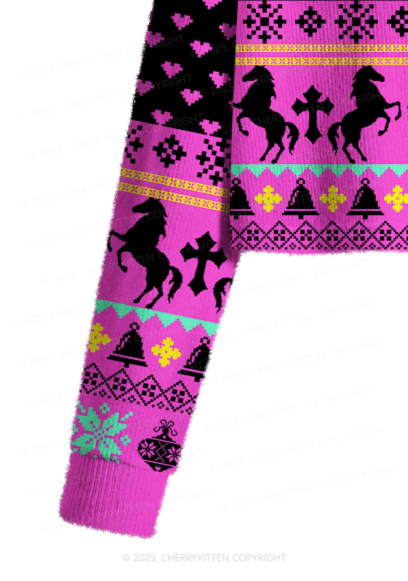 Orange Pony Y2K Christmas Crop Knit Sweatshirt Cherrykitten