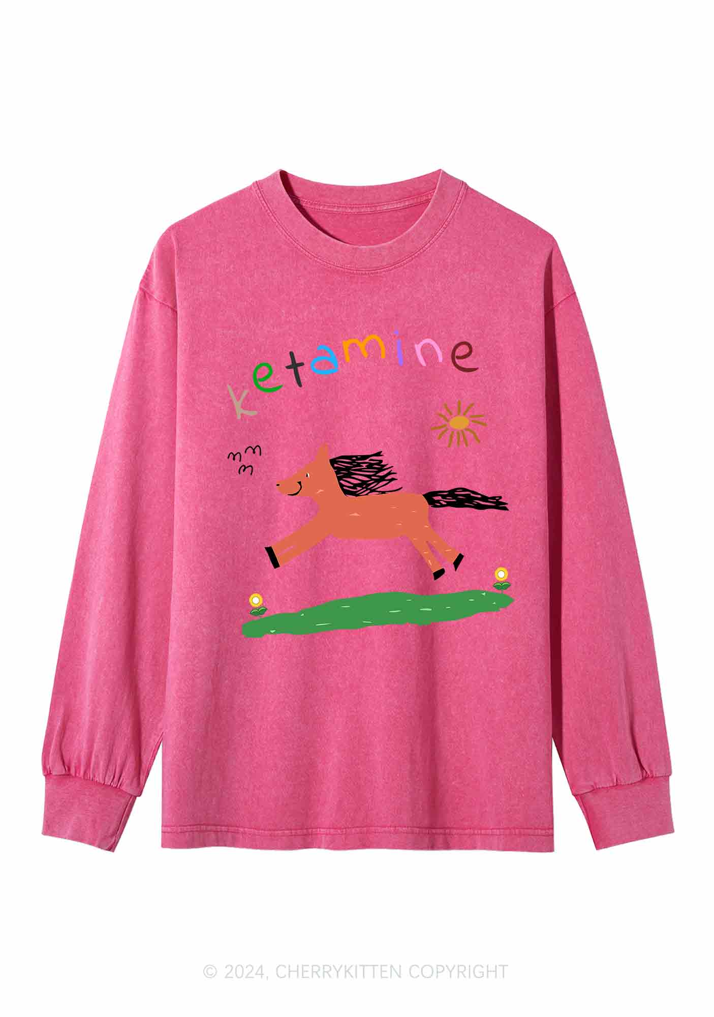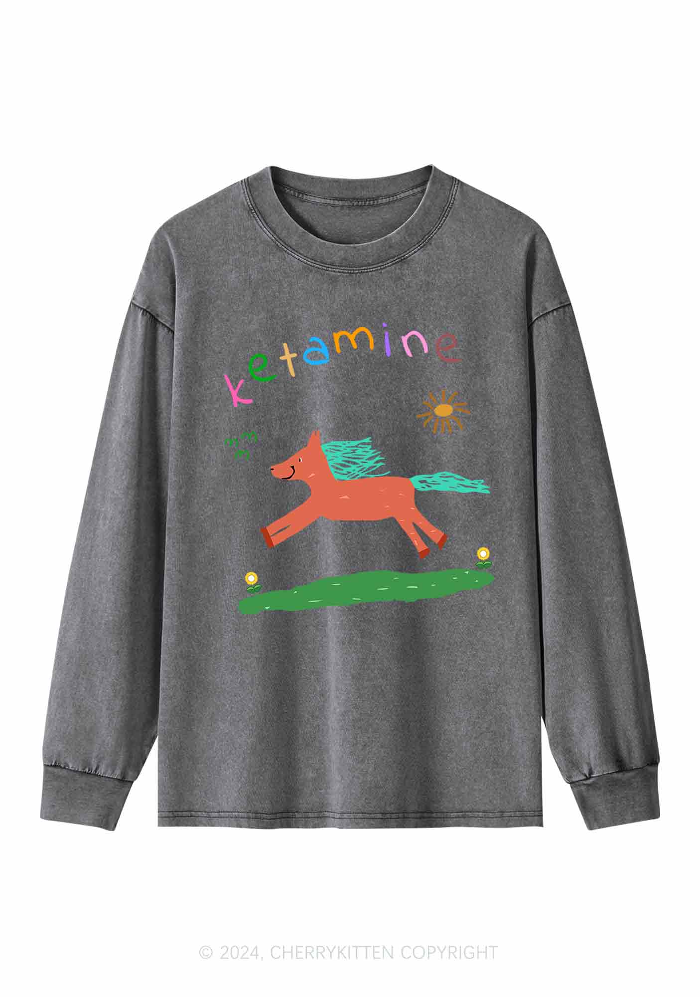 Orange Pony Y2K Washed Long Sleeves Cherrykitten