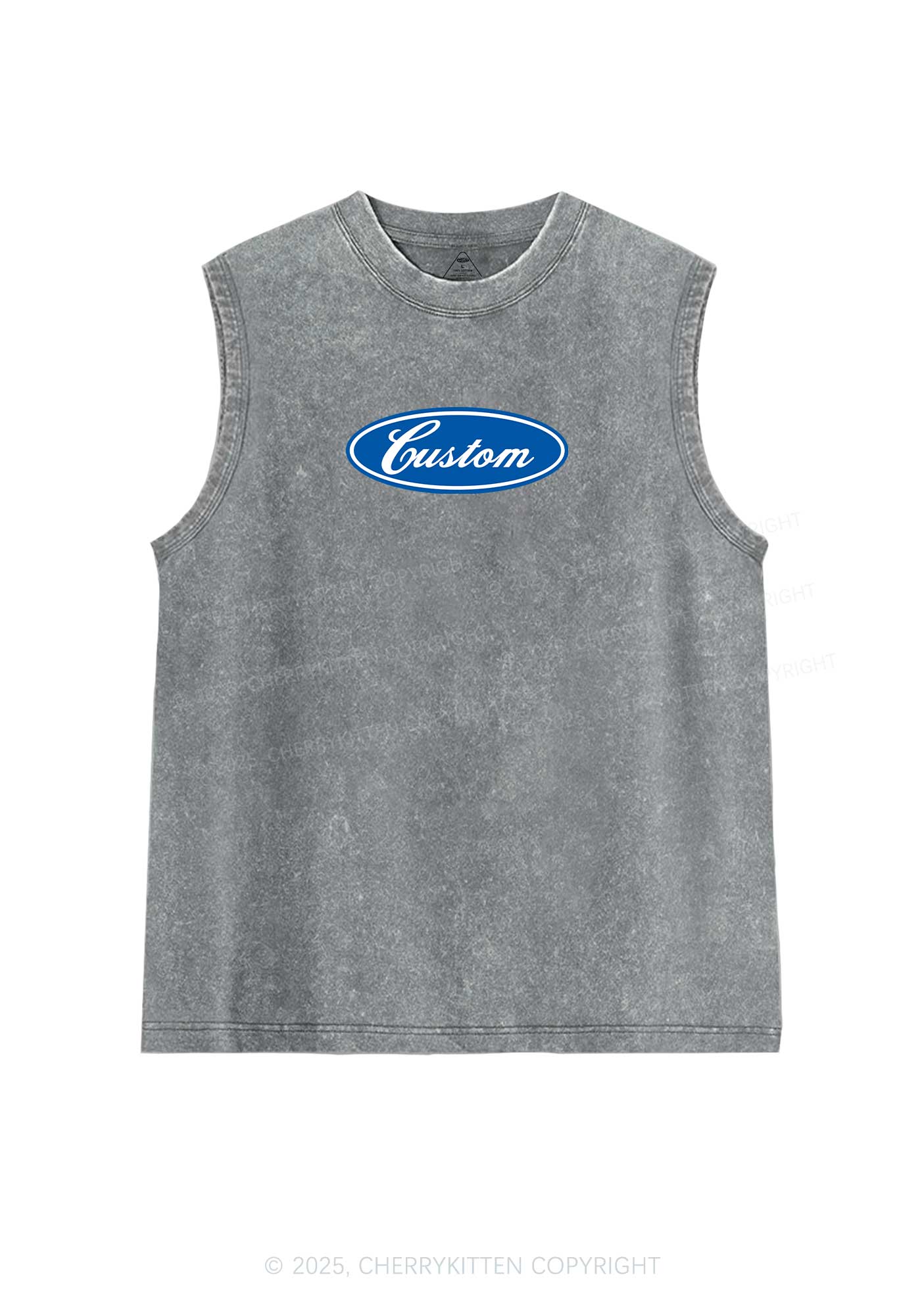 Oval Custom Text Y2K Washed Muscle Tank Cherrykitten