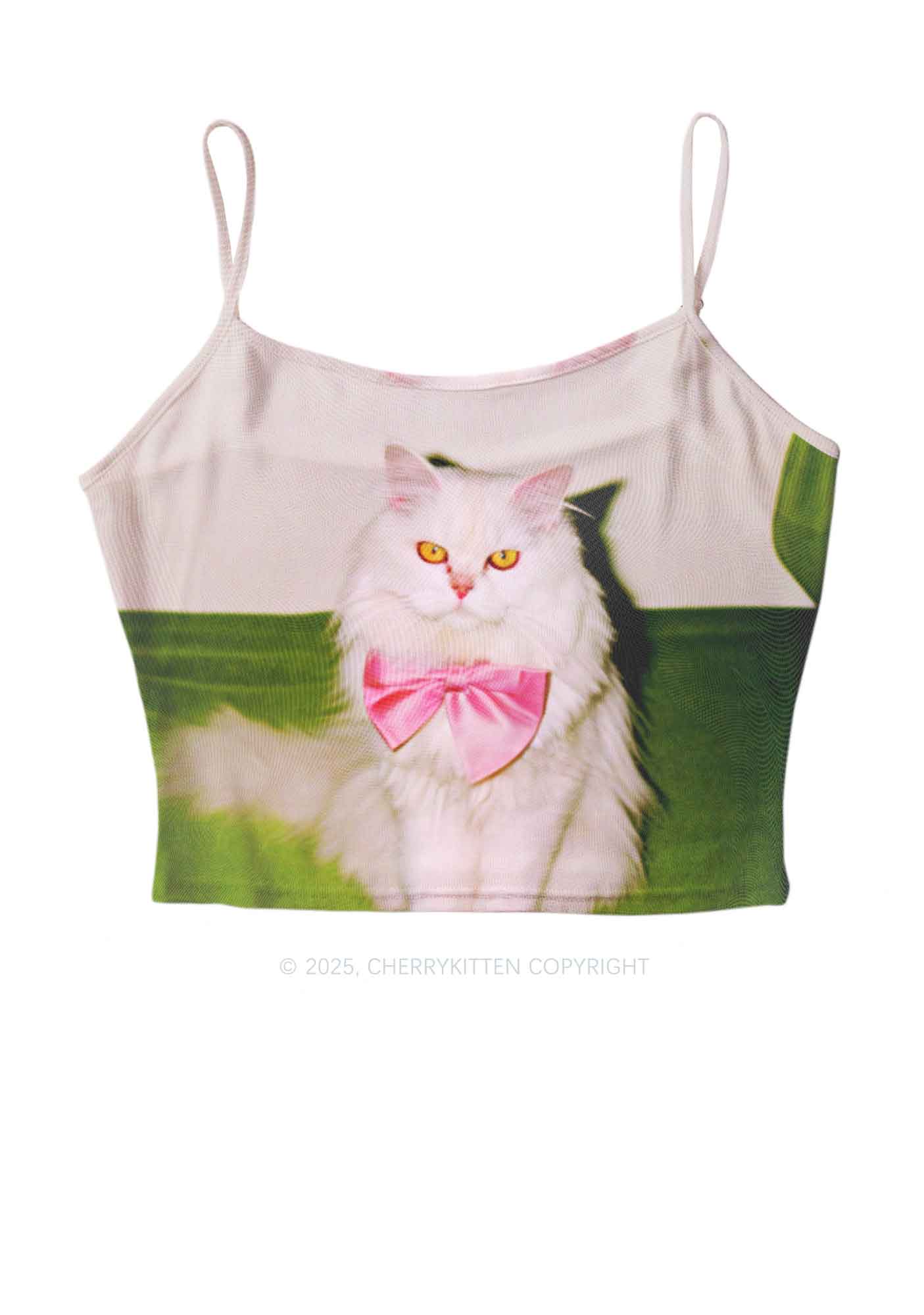 Pink Bow Cat Y2K Mesh Cami Tank Cherrykitten