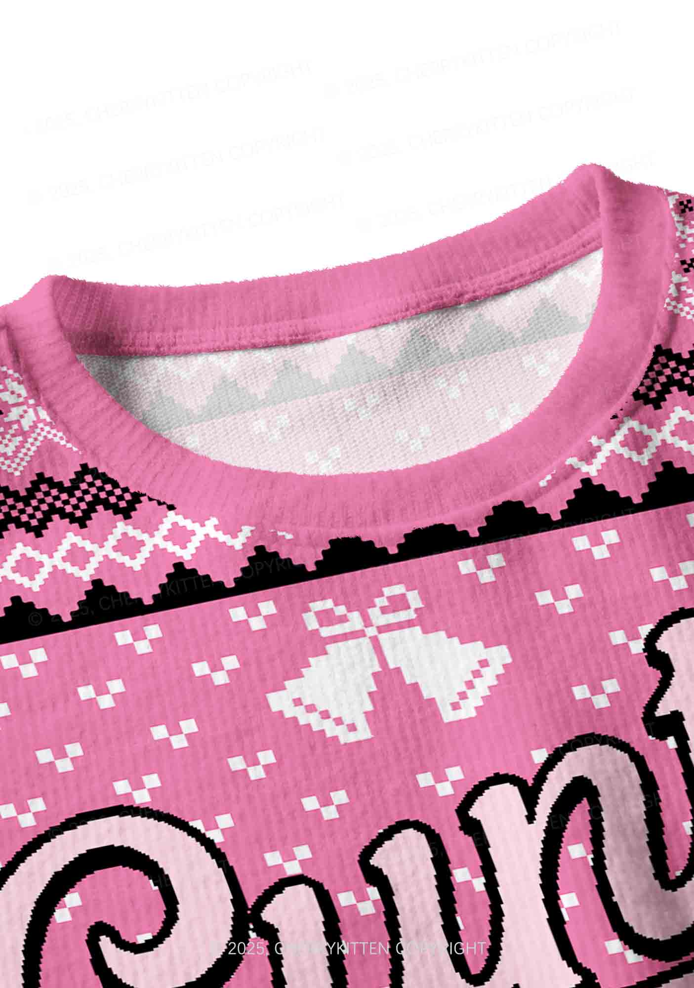 Pink Cxxt Star Y2K Christmas Crop Knit Sweatshirt Cherrykitten