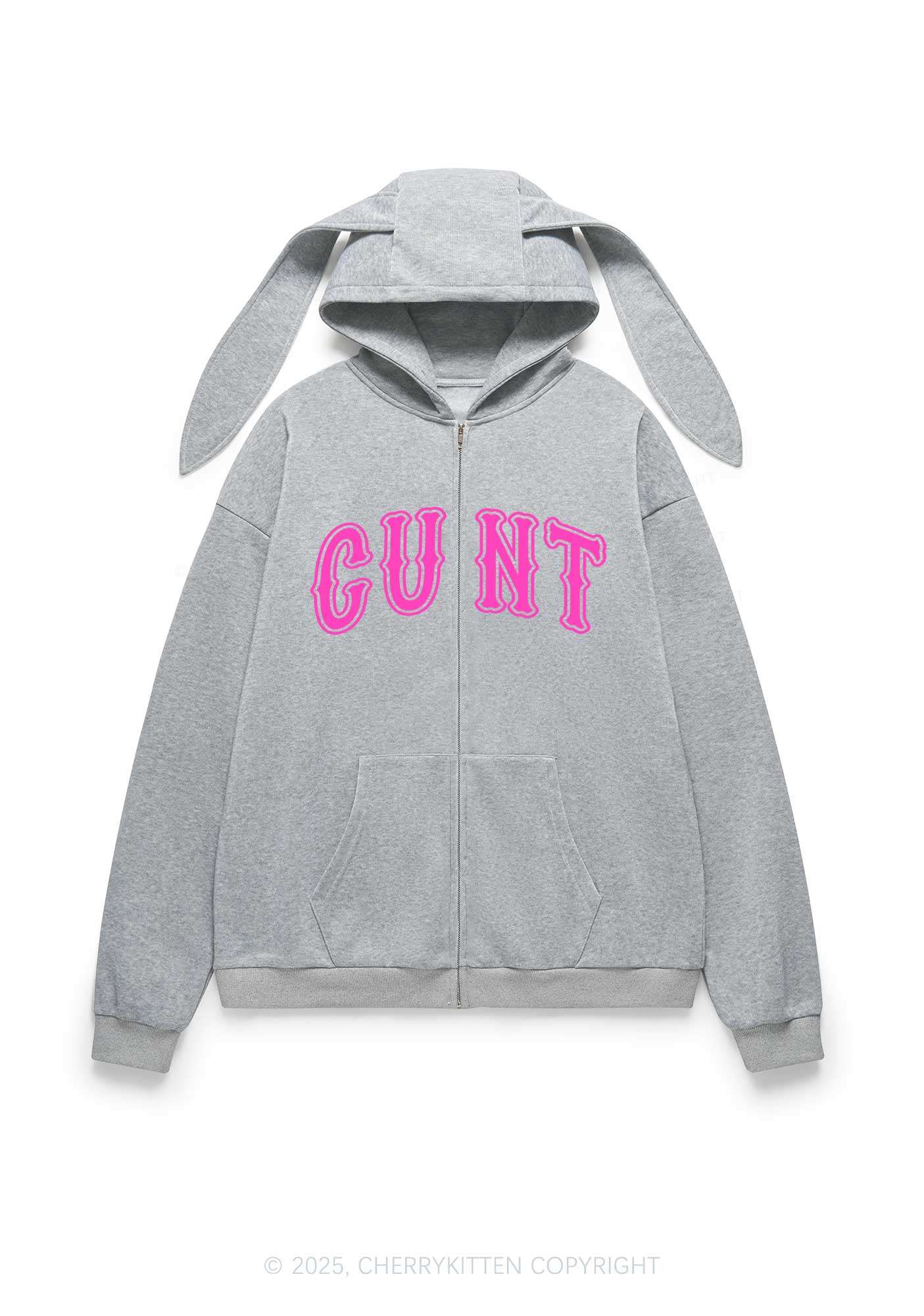 Pink Cxxt Y2K Bunny Ear Zip Hoodie Cherrykitten