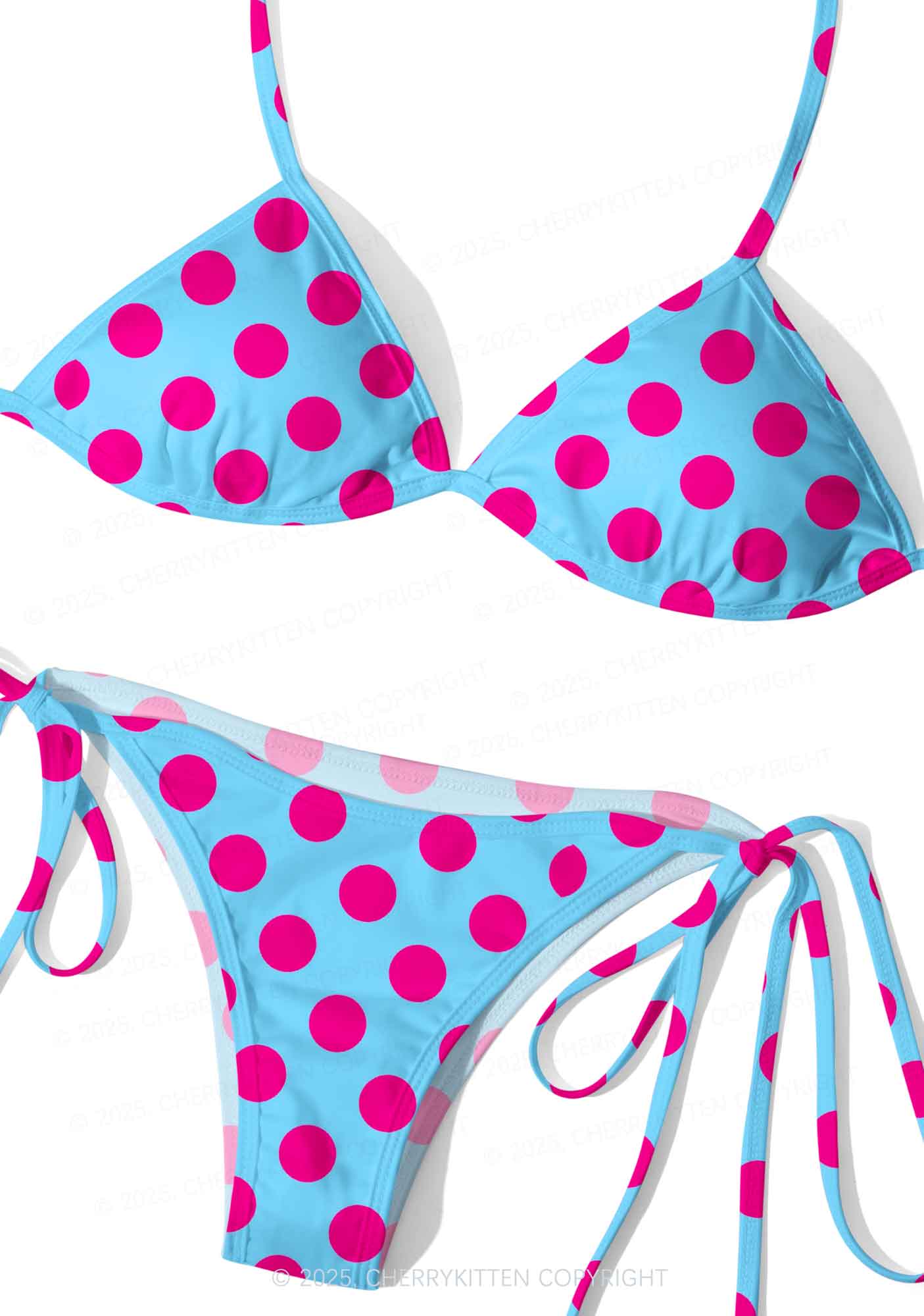 Pink Dots On Blue Y2K Print Bikini Set Cherrykitten