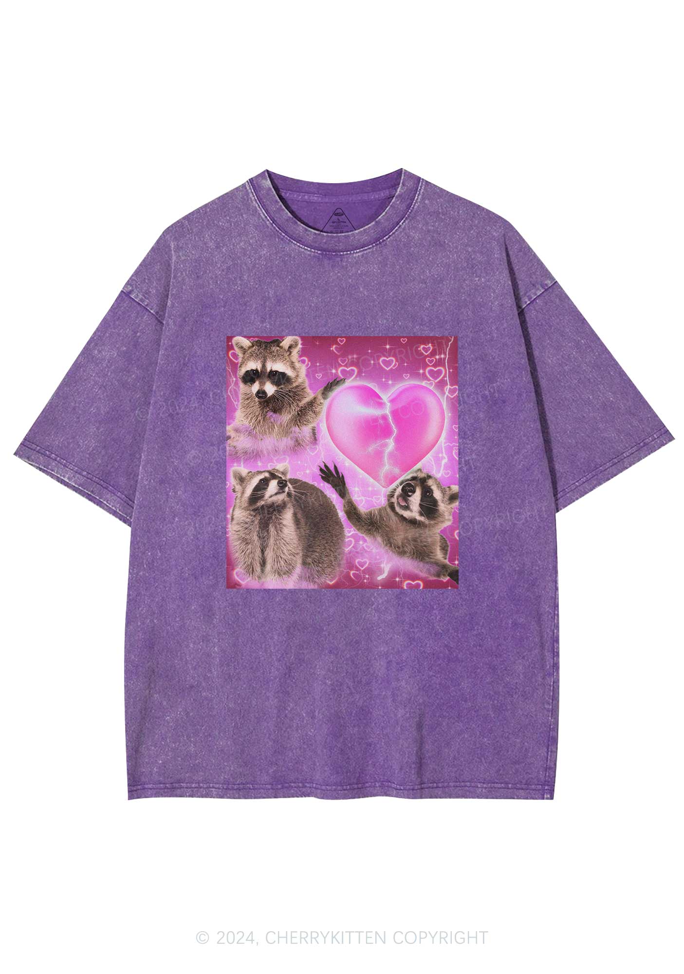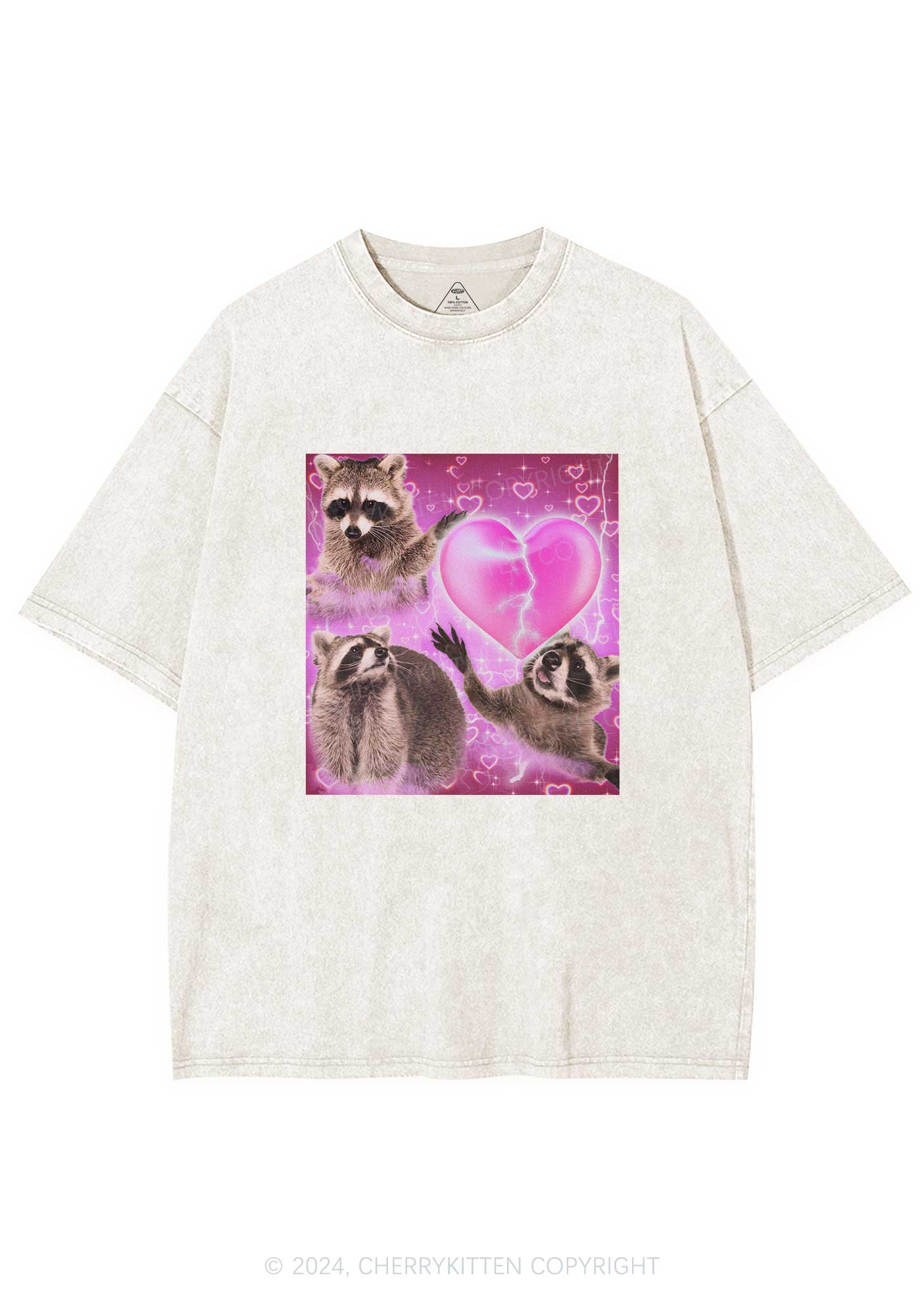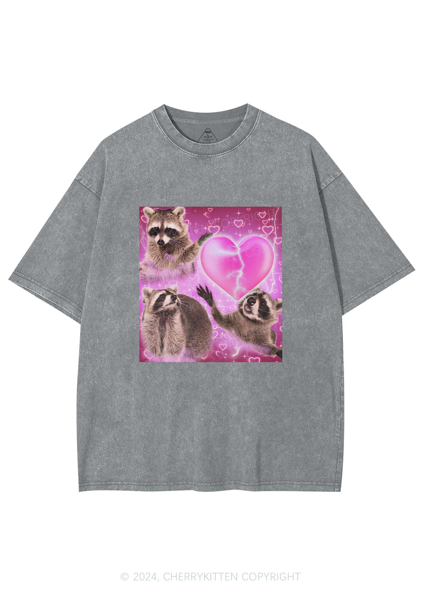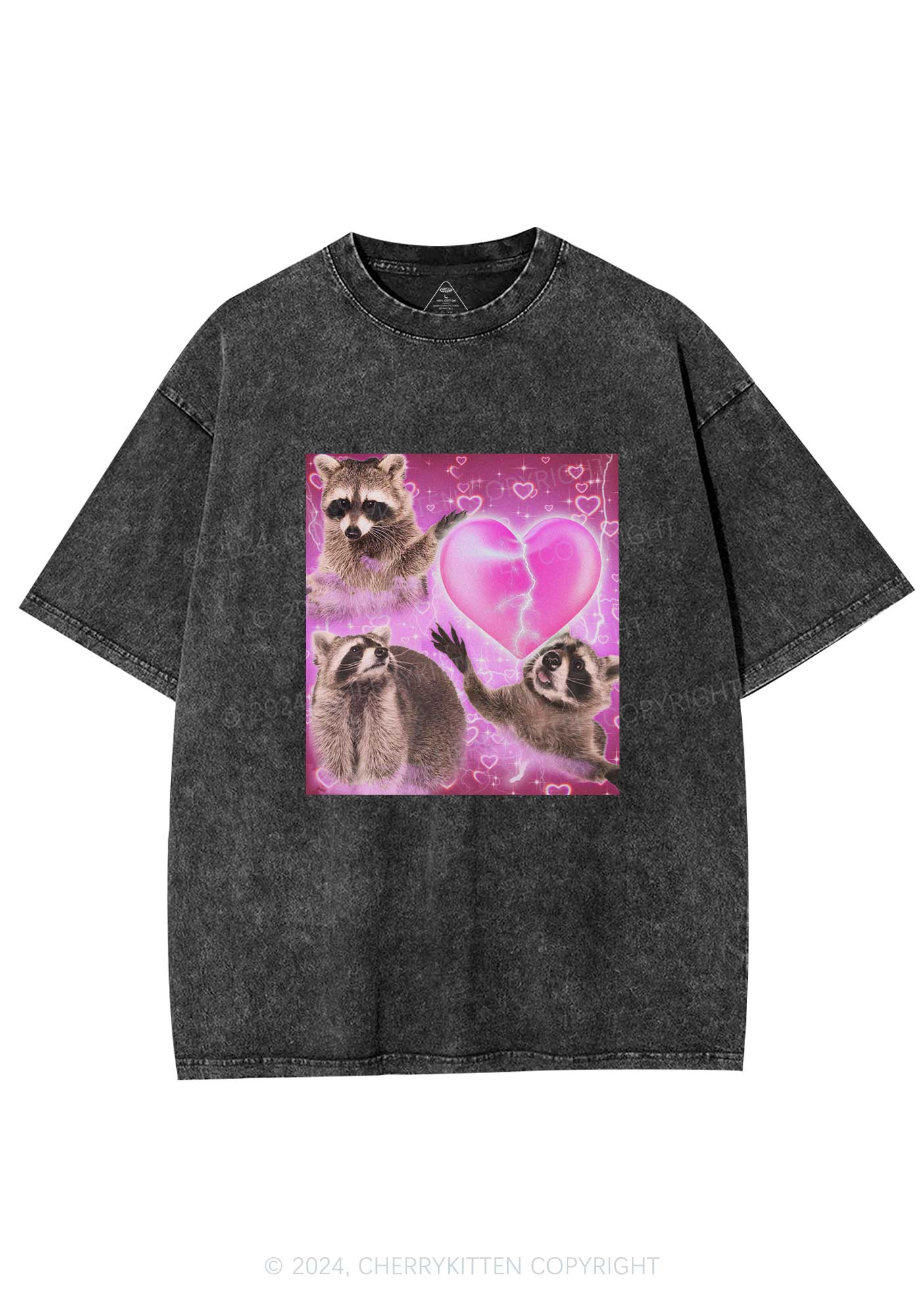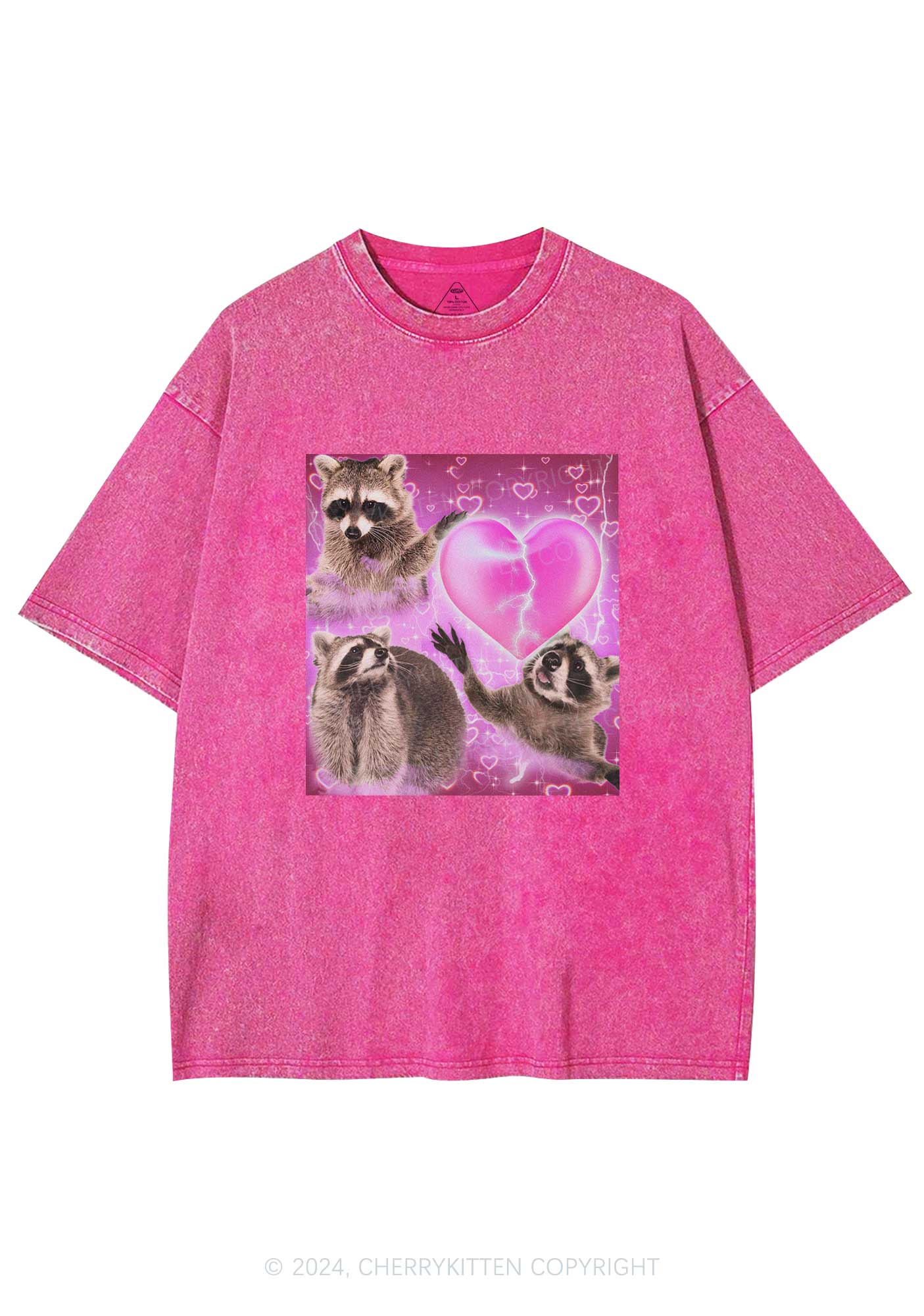 Pink Heart Raccoon Y2K Valentine's Day Washed Tee Cherrykitten