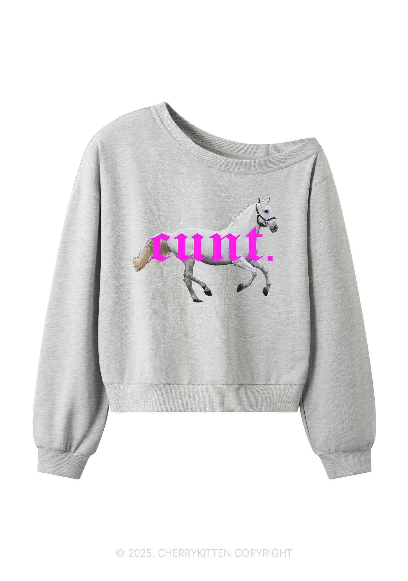 Pink Horse Y2K Off Shoulder Sweatshirts Cherrykitten