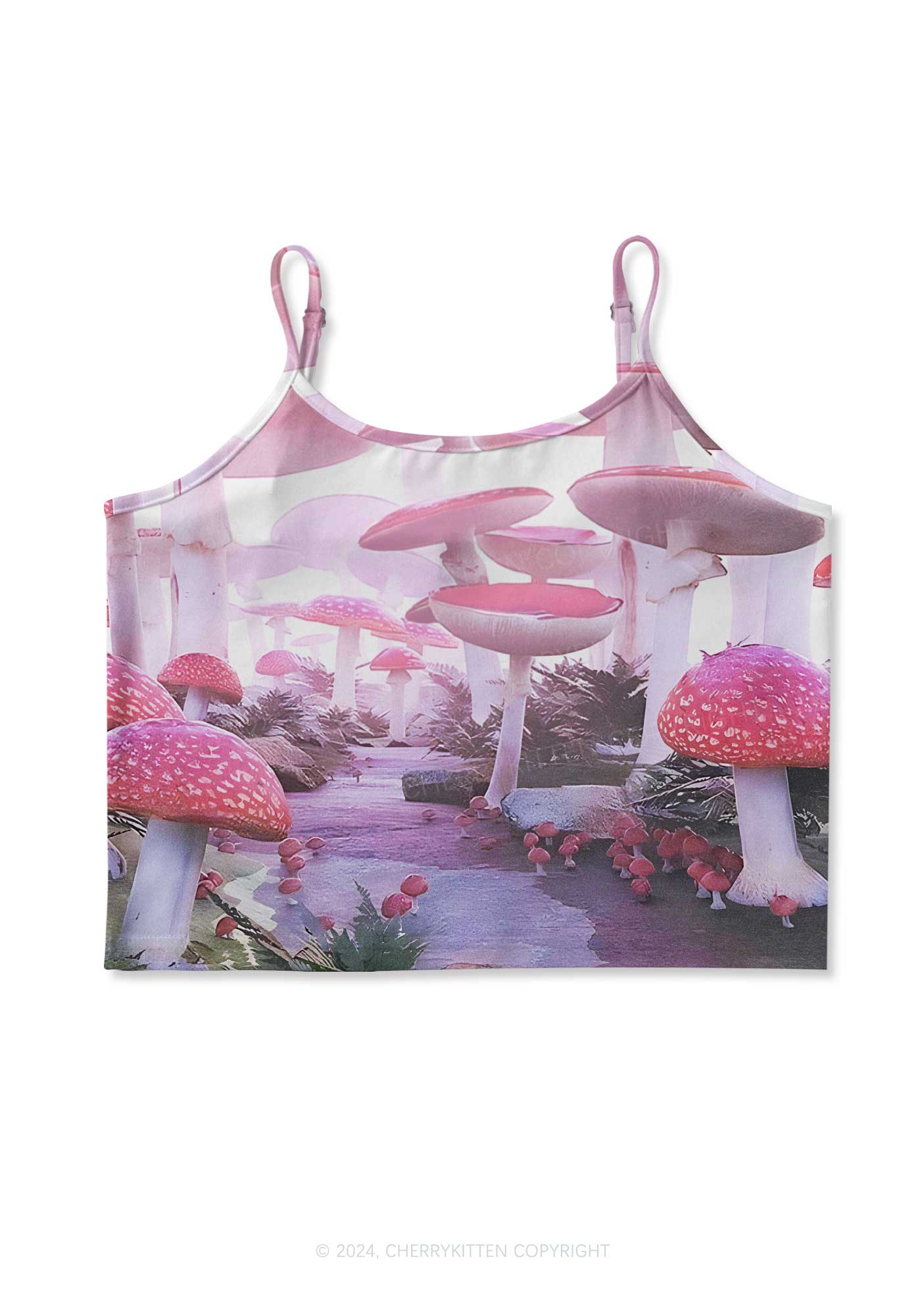 Pink Mushroom Y2K Print Cami Crop Top Cherrykitten