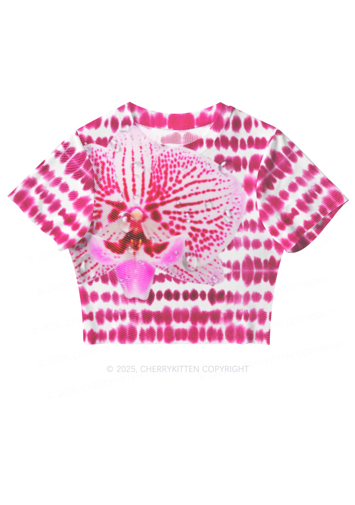 Pink Orchid Dewdrops Y2K Mesh Crop Top Cherrykitten