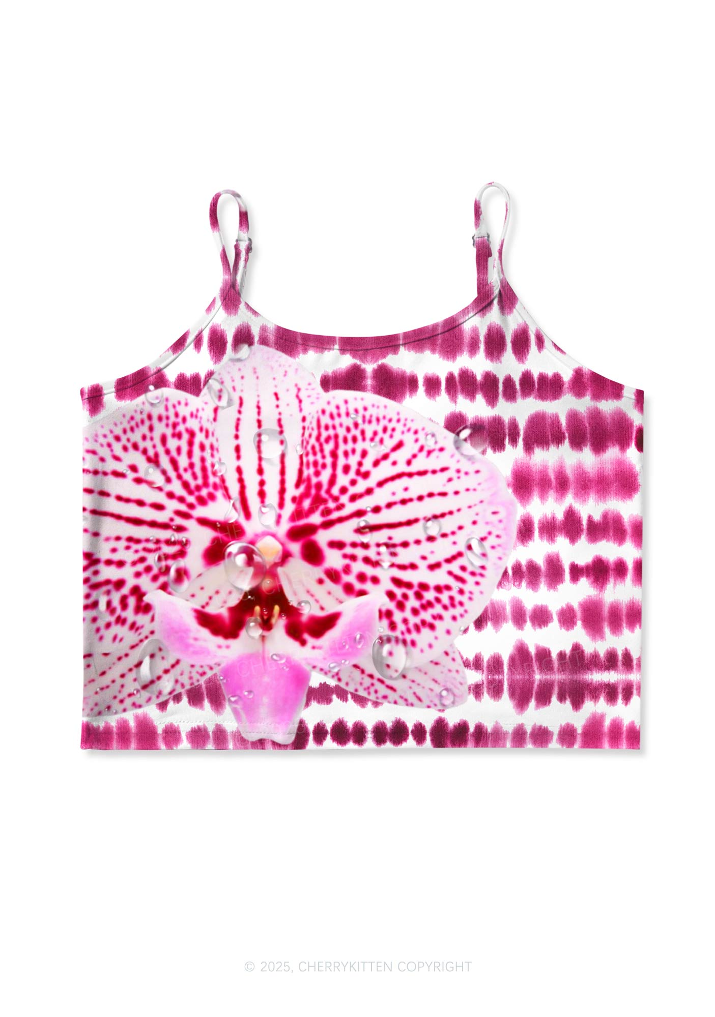 Pink Orchid Dewdrops Y2K Print Cami Crop Top Cherrykitten