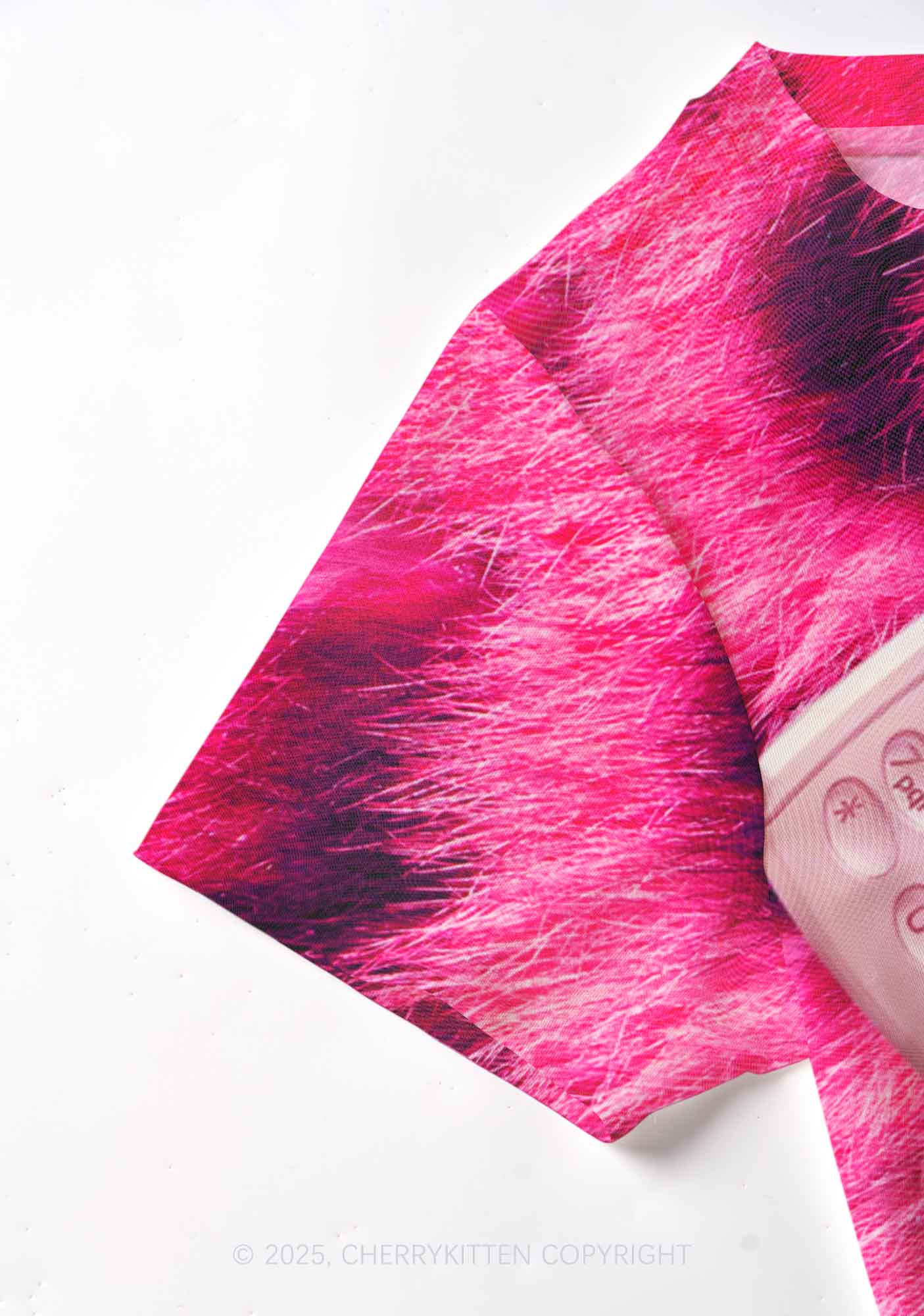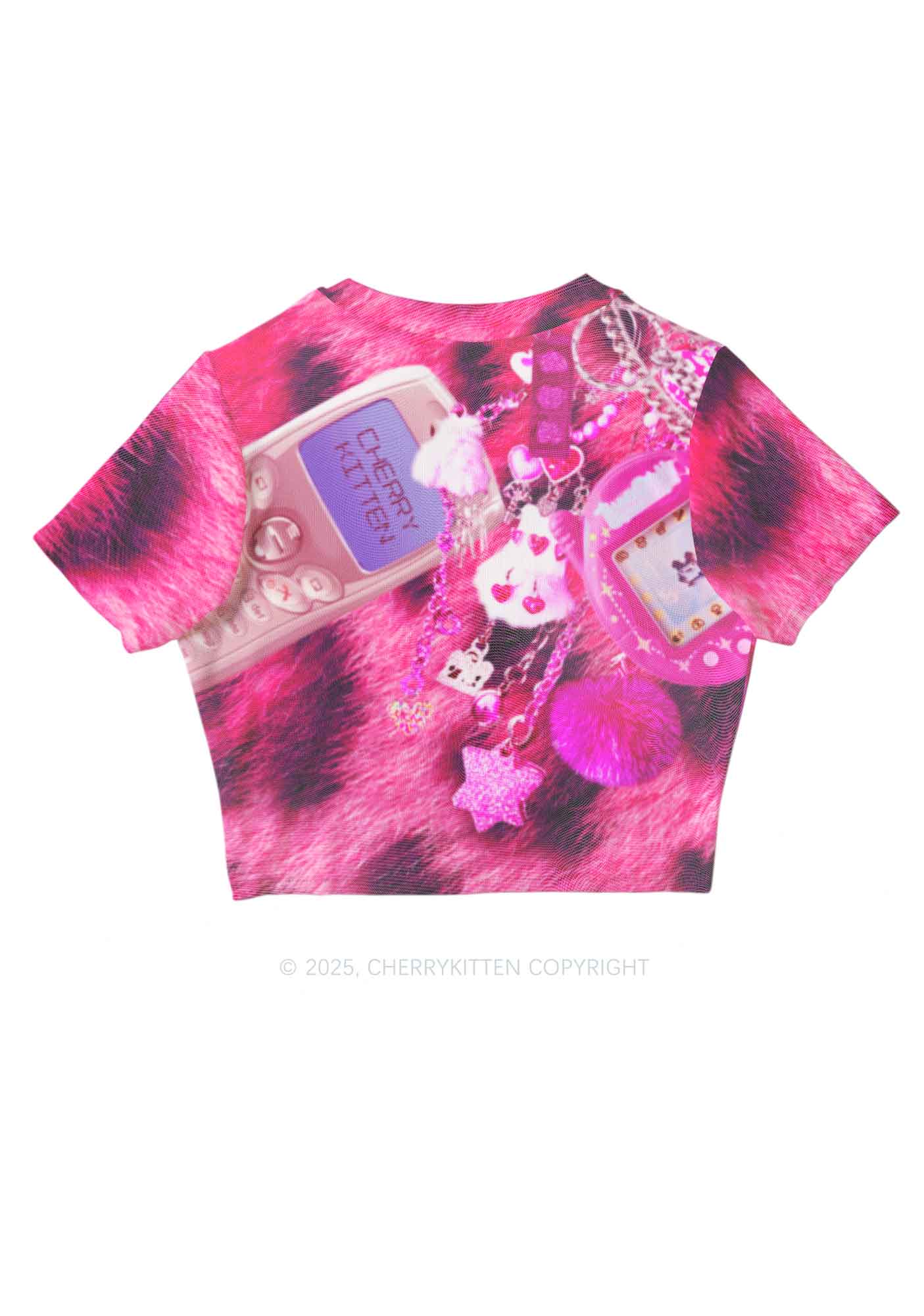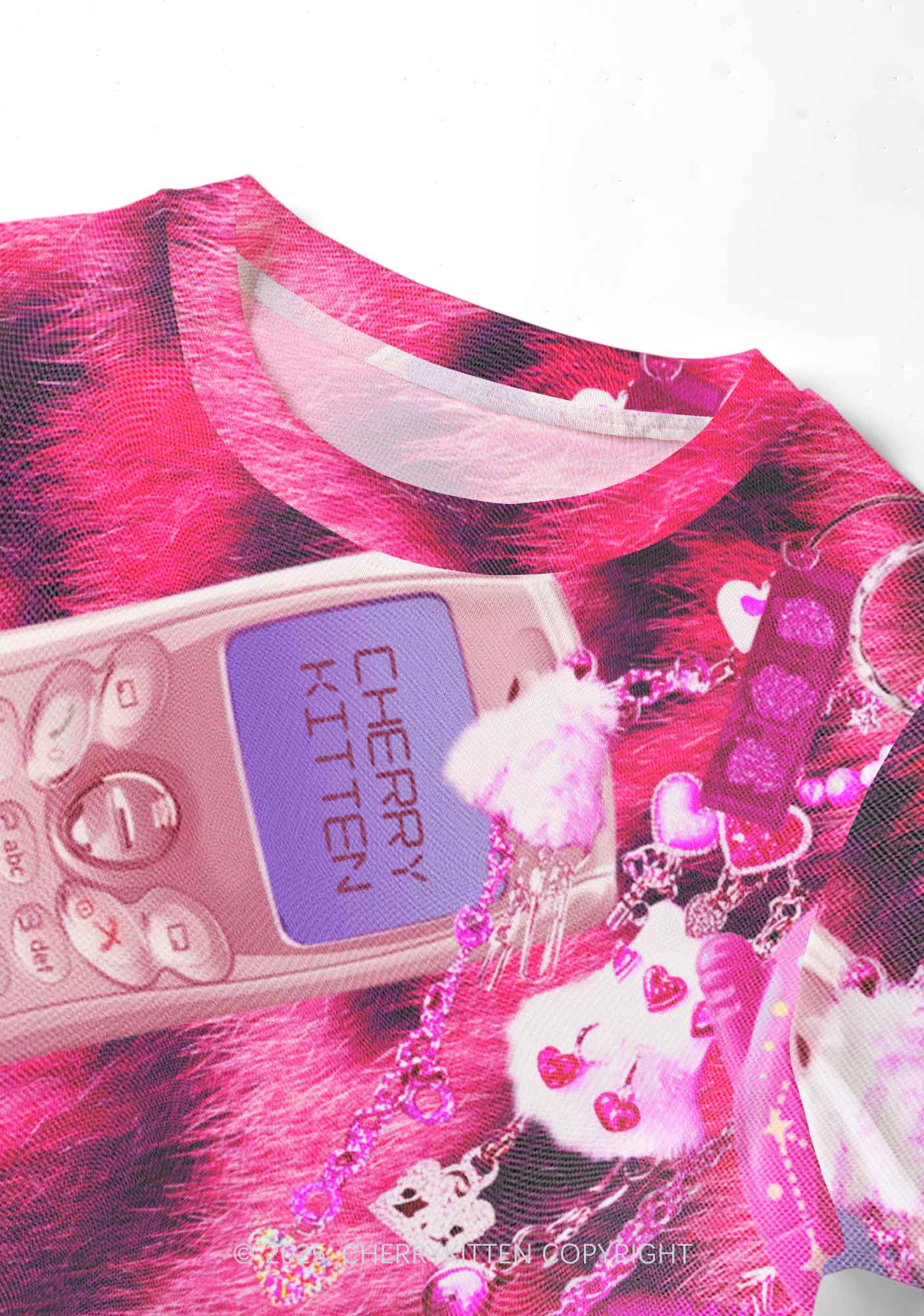 Pink Plush Phone Y2K Mesh Crop Top Cherrykitten