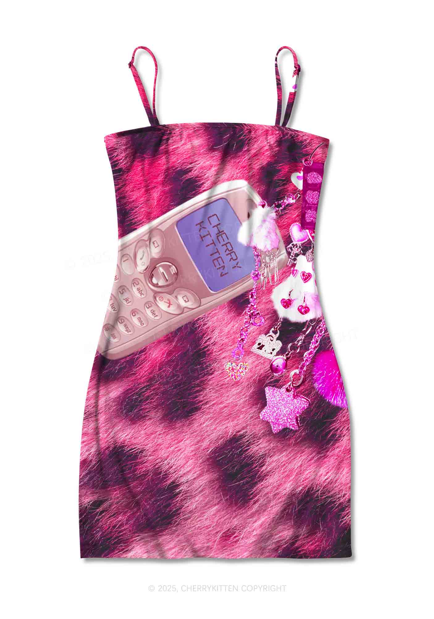 Pink Plush Phone Y2K Print Slip Dress Cherrykitten