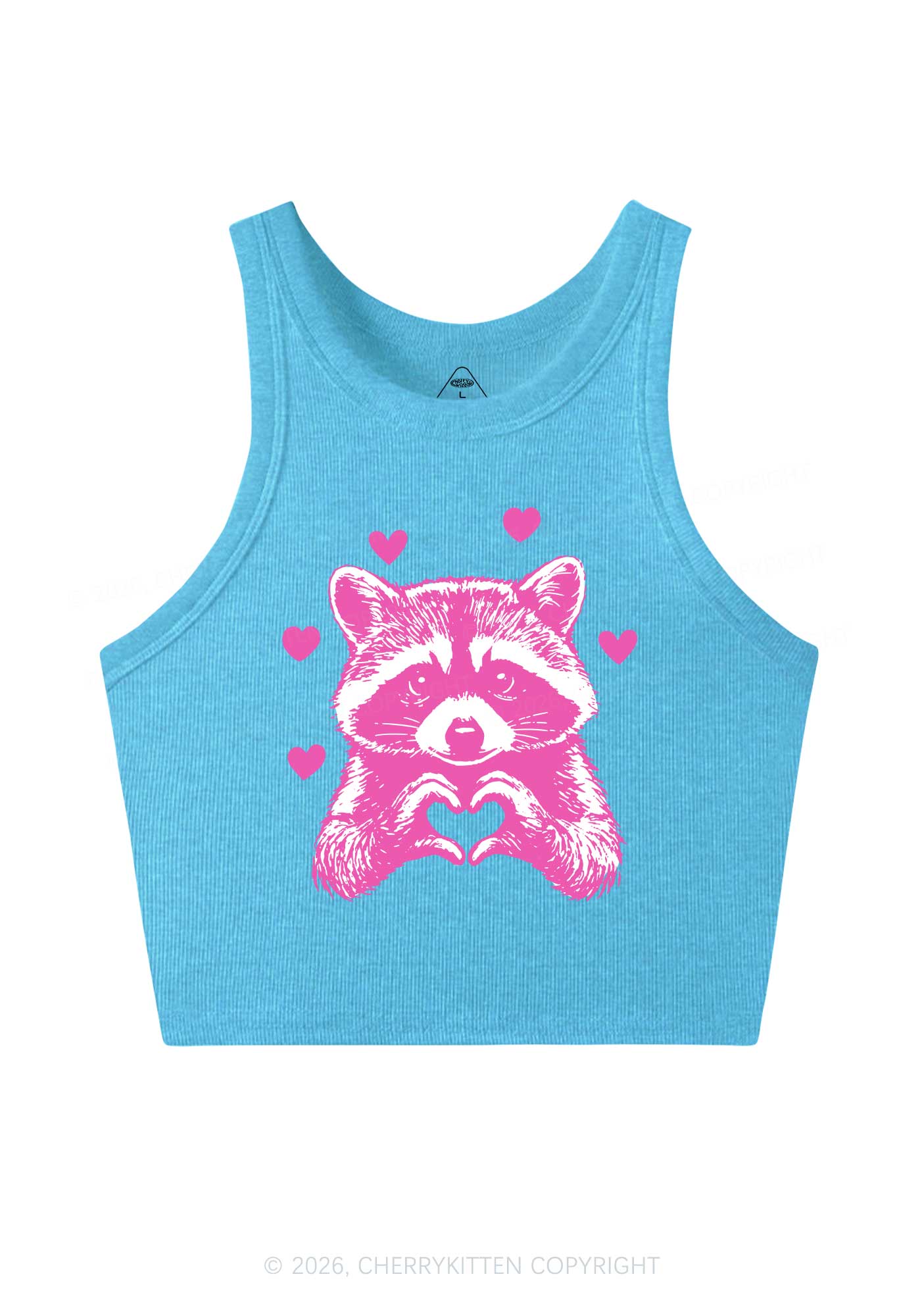 Pink Raccoon Heart Valentine's Day Y2K Crop Tank Top Cherrykitten