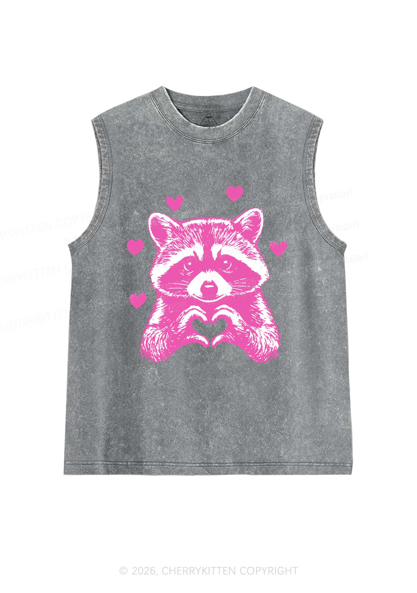 Pink Raccoon Heart Valentine's Day Y2K Washed Muscle Tank Cherrykitten