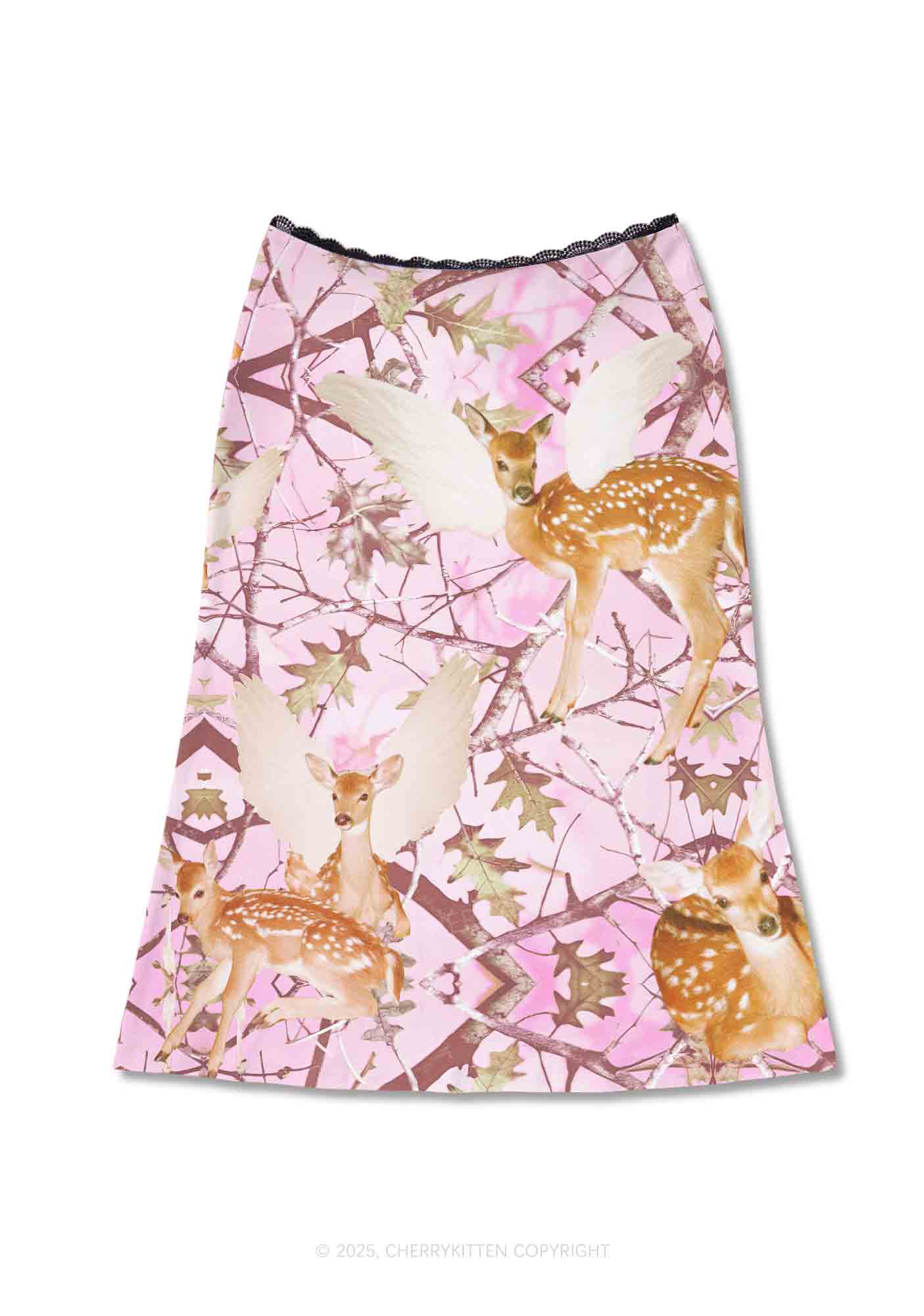 Pink Wood Deer Y2K Print Midi Skirt Cherrykitten