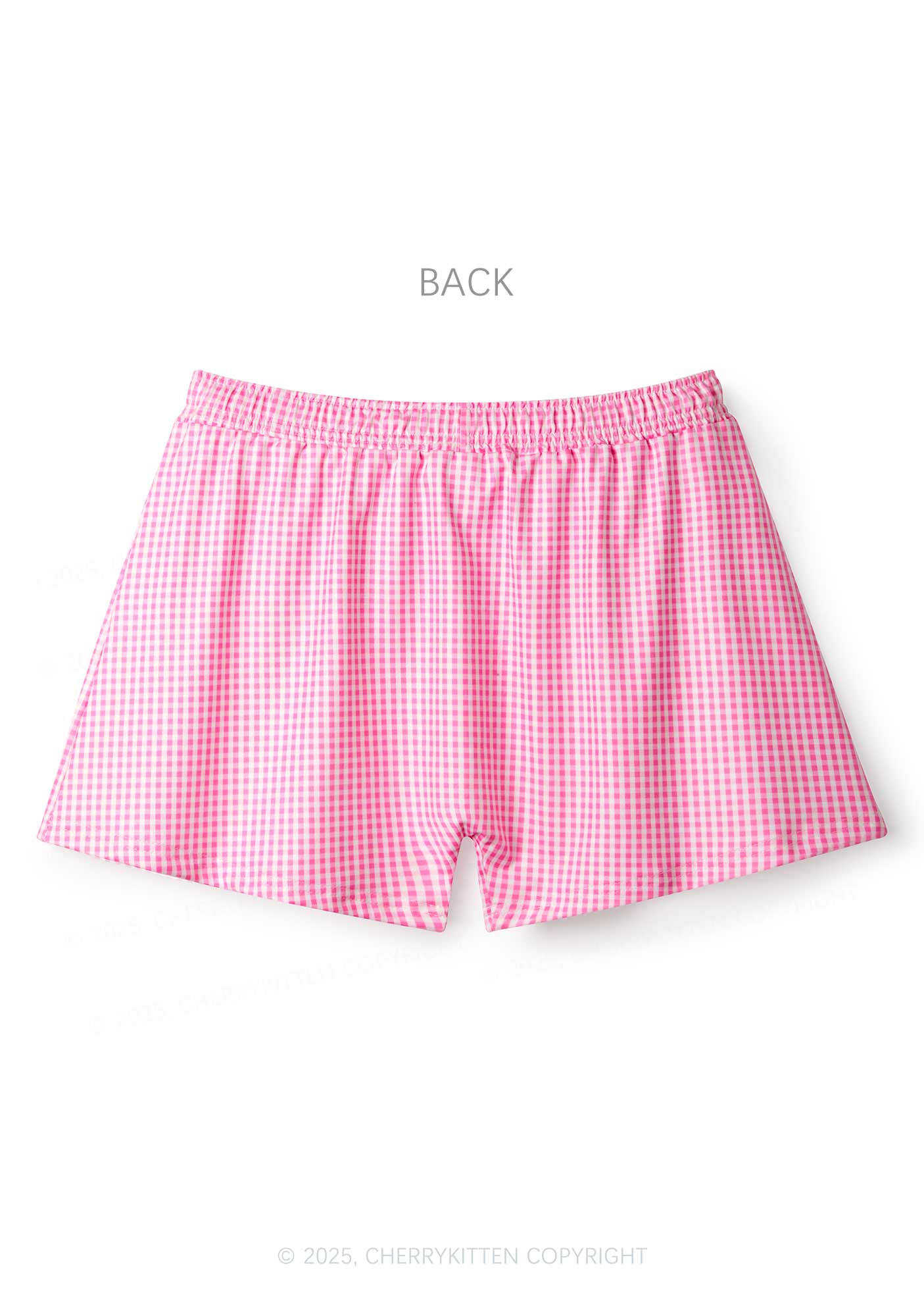 Plain Y2K Pink Gingham Boxer Men Shorts Cherrykitten