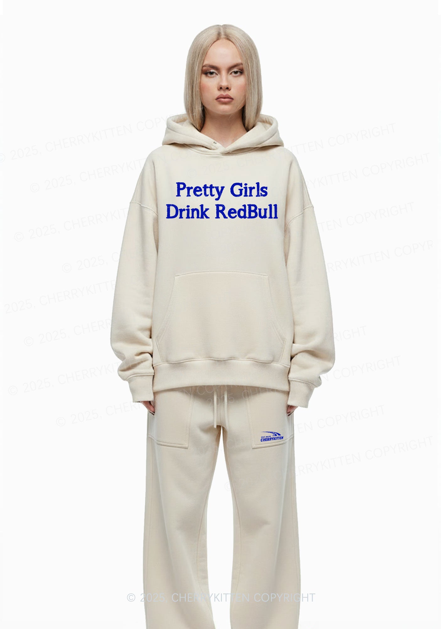 Pretty Girls Drink Red Y2K Fleece Hoodie Set Cherrykitten