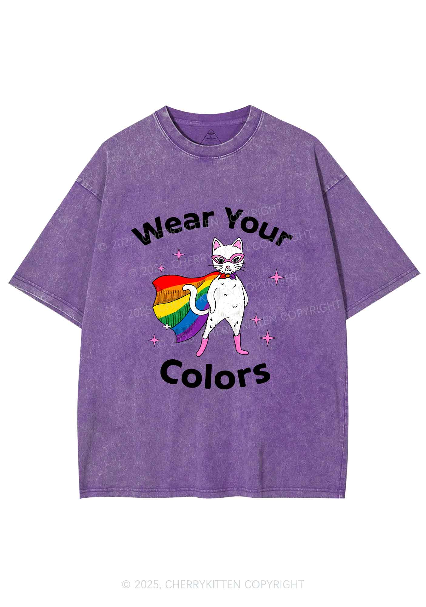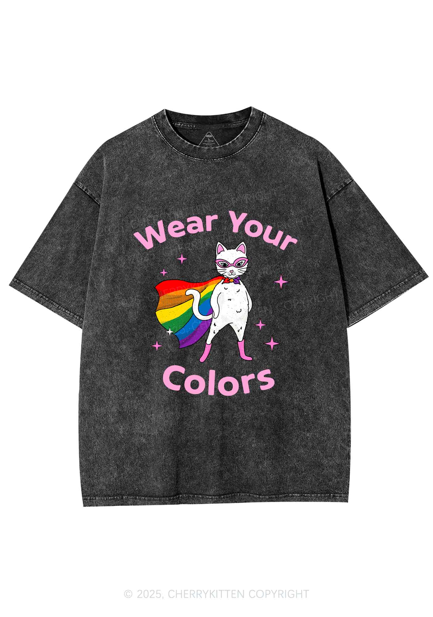Pride Flag Cat Y2K Shirts Washed Tee Cherrykitten