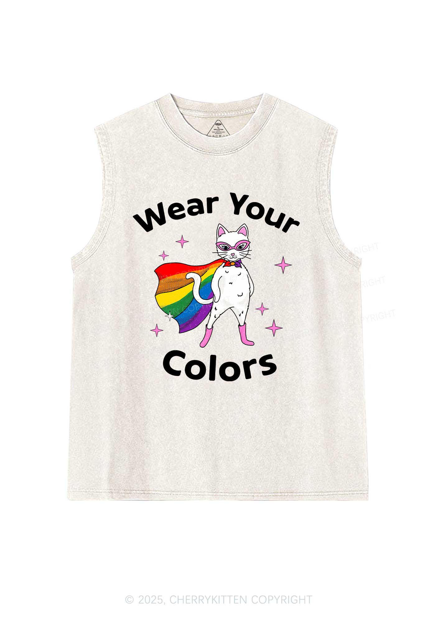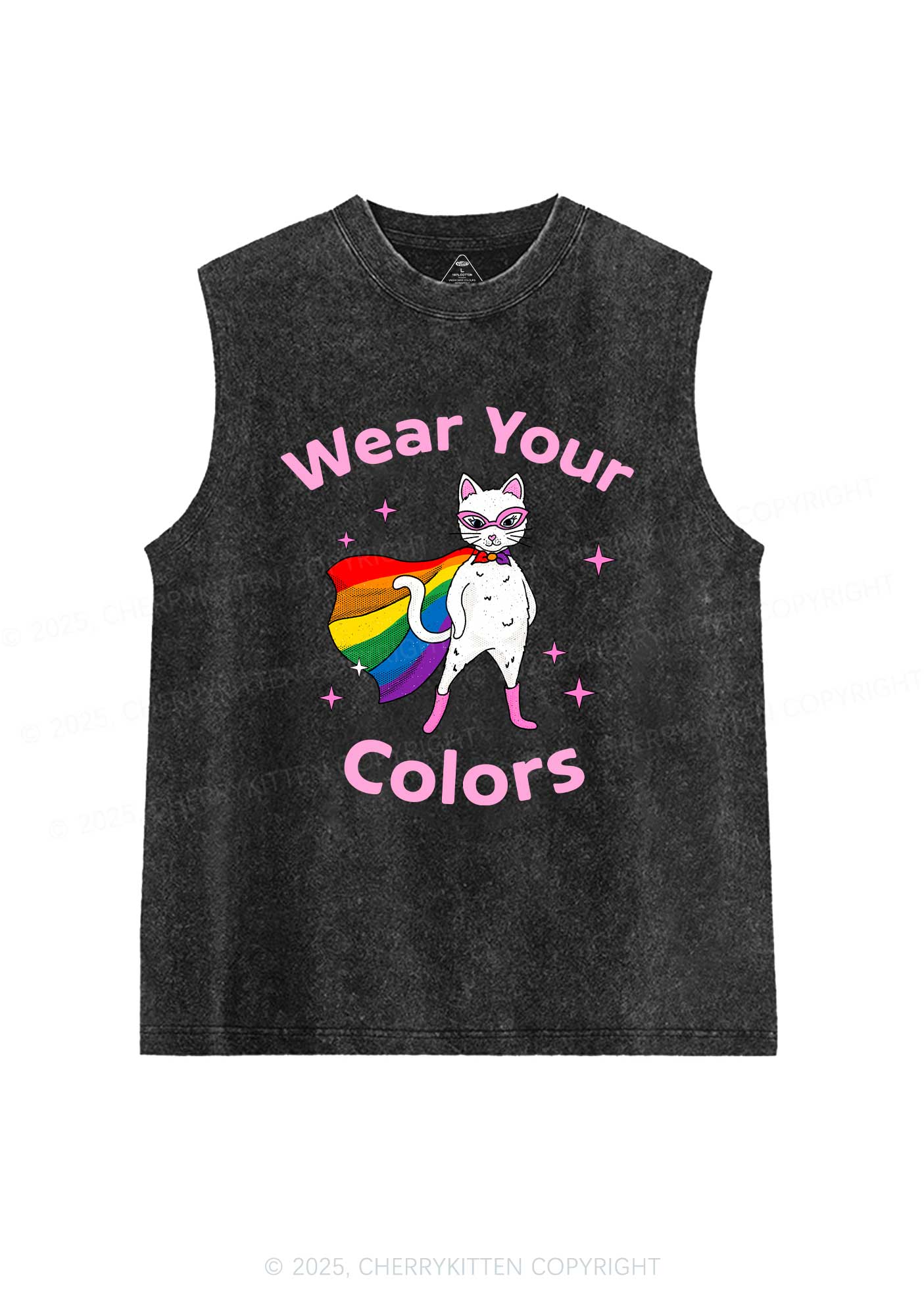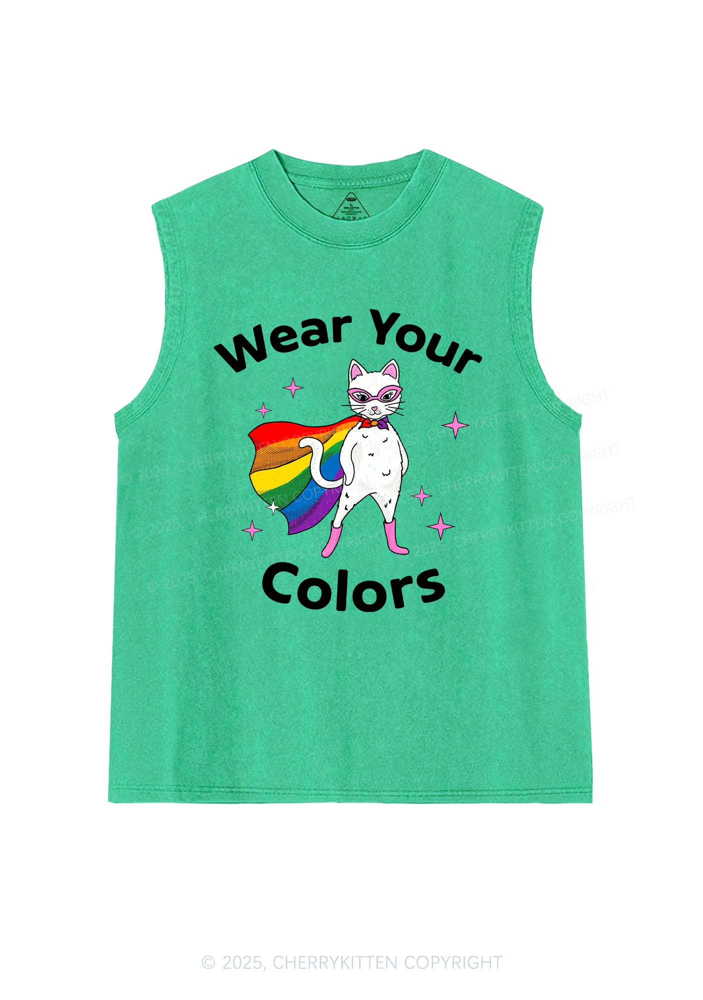 Pride Flag Cat Y2K Washed Muscle Tank Cherrykitten