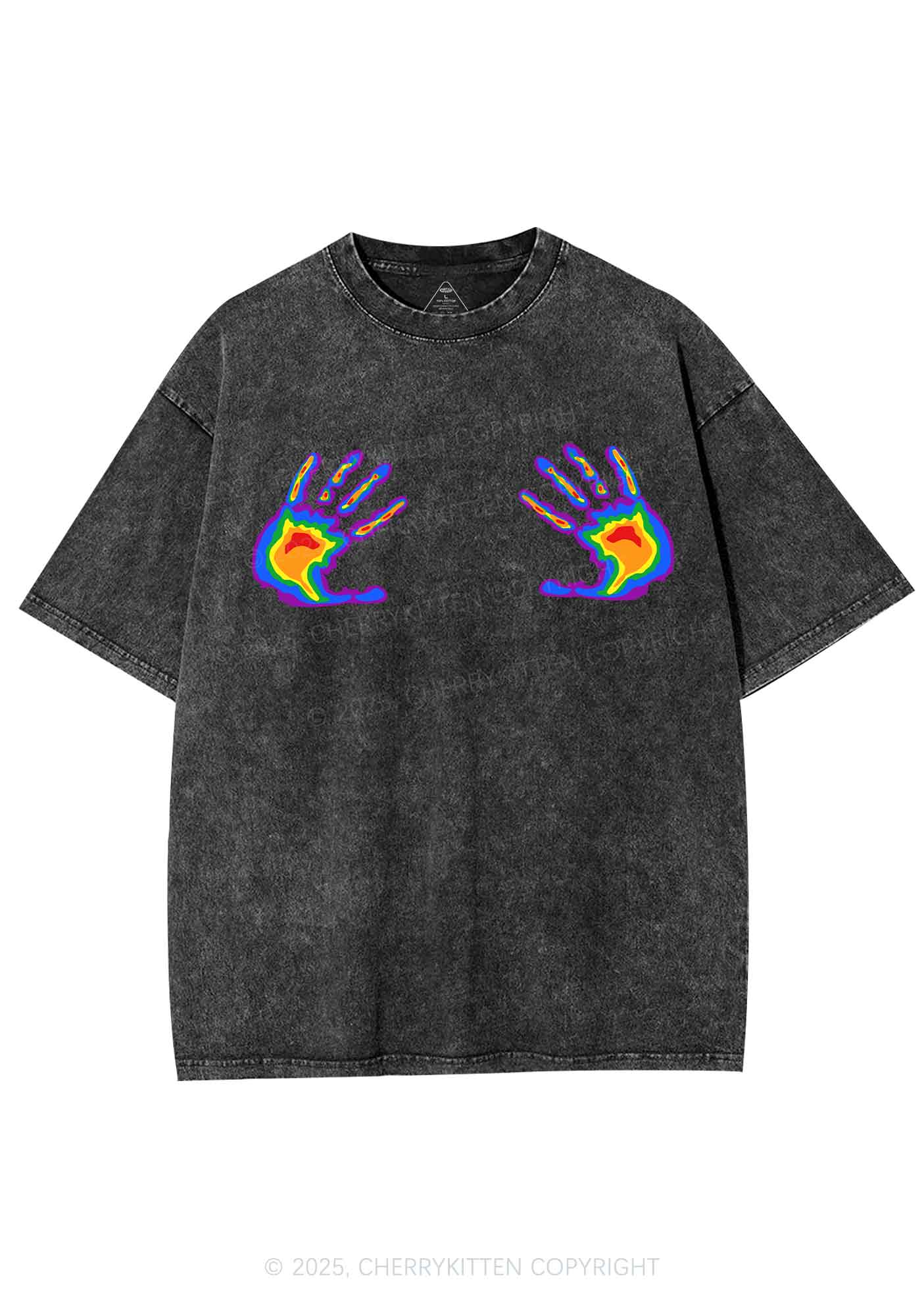 Pride Thermal Hands Y2K Shirts Washed Tee Cherrykitten