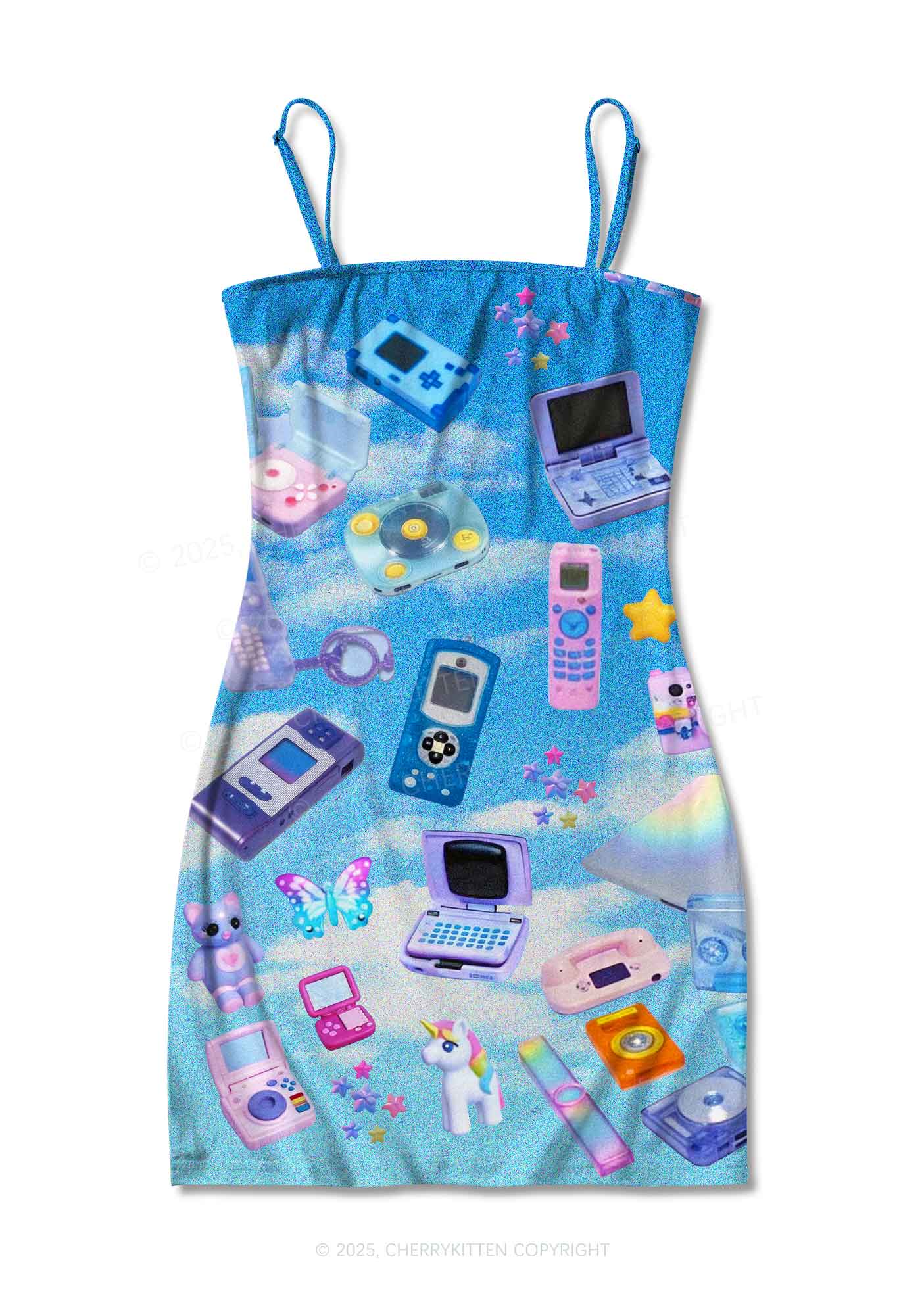 Punk Digital Y2K Print Slip Dress Cherrykitten