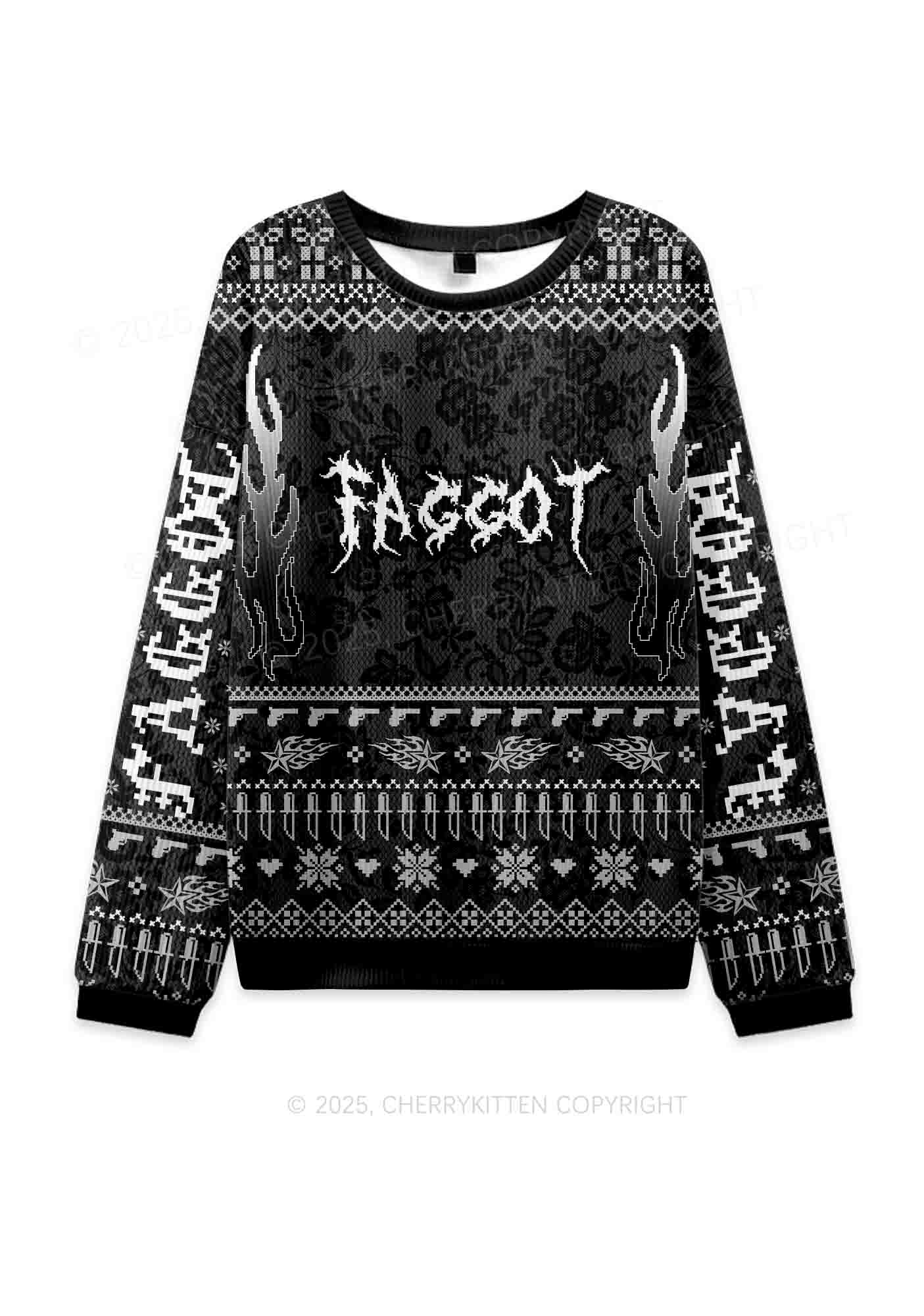 Punk Faggot Pride Y2K Christmas Knit Sweatshirt Cherrykitten