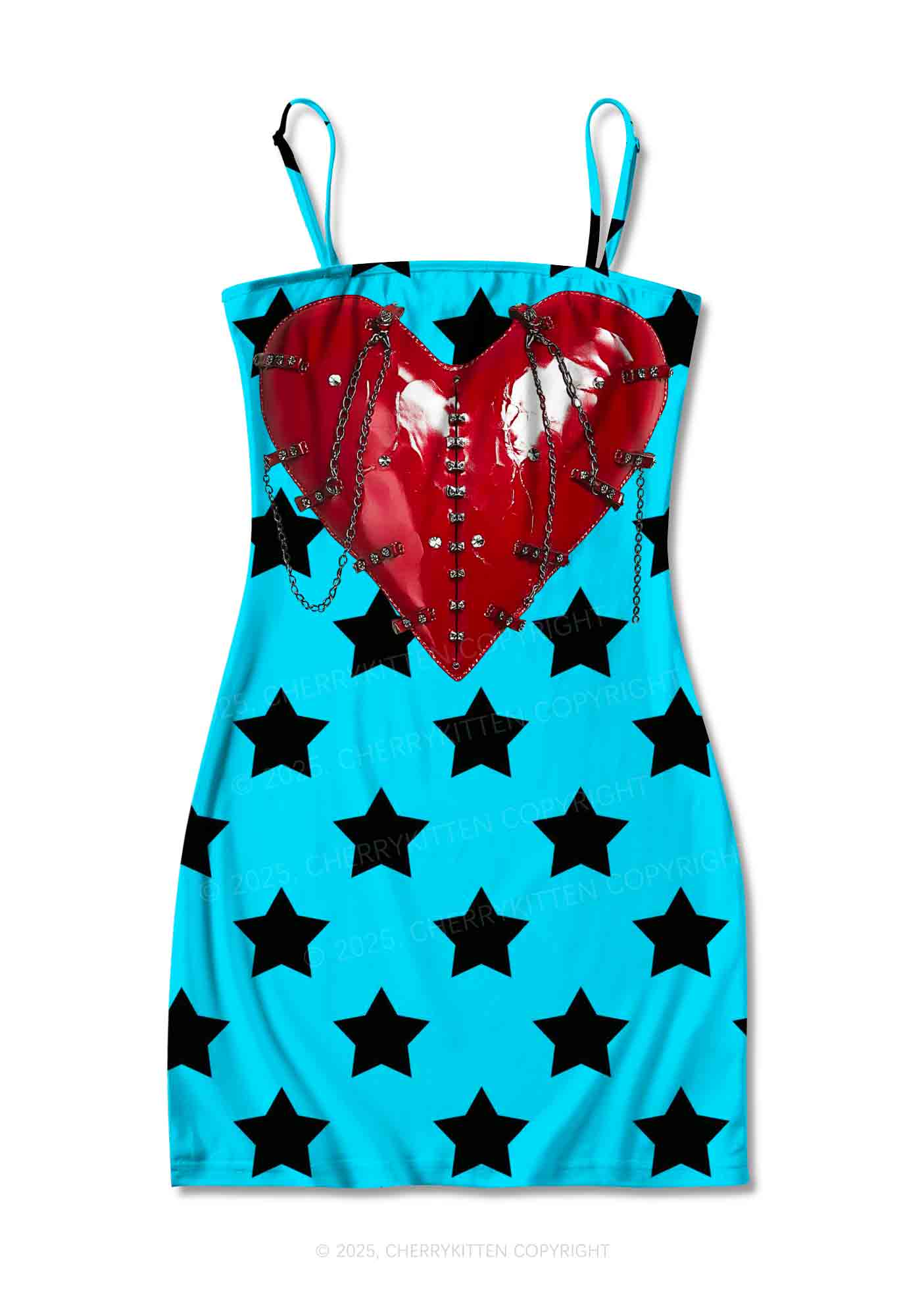 Punk Red Heart Y2K Print Slip Dress Cherrykitten