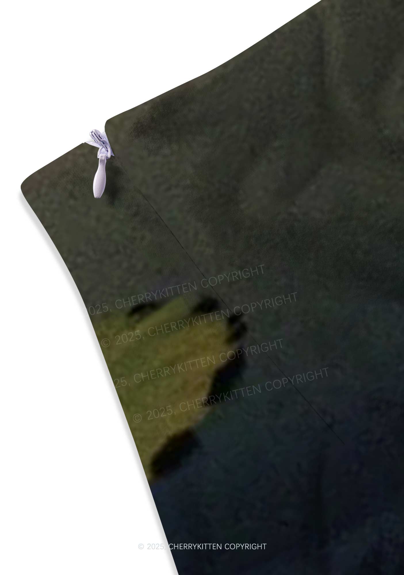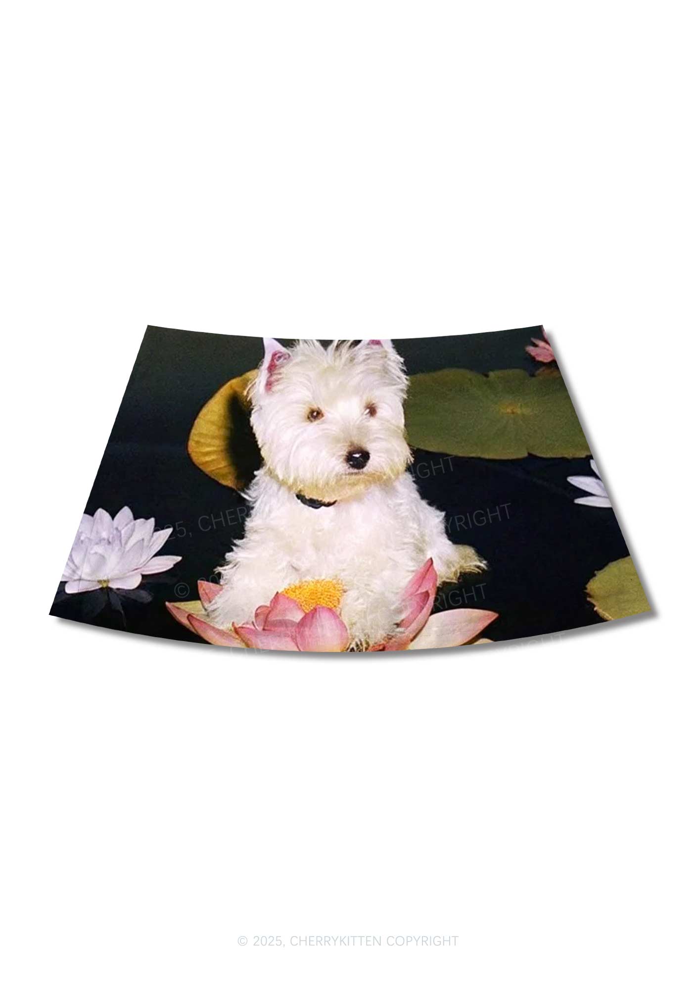 Puppy On Lotus Y2K Print Mini Skirt Cherrykitten
